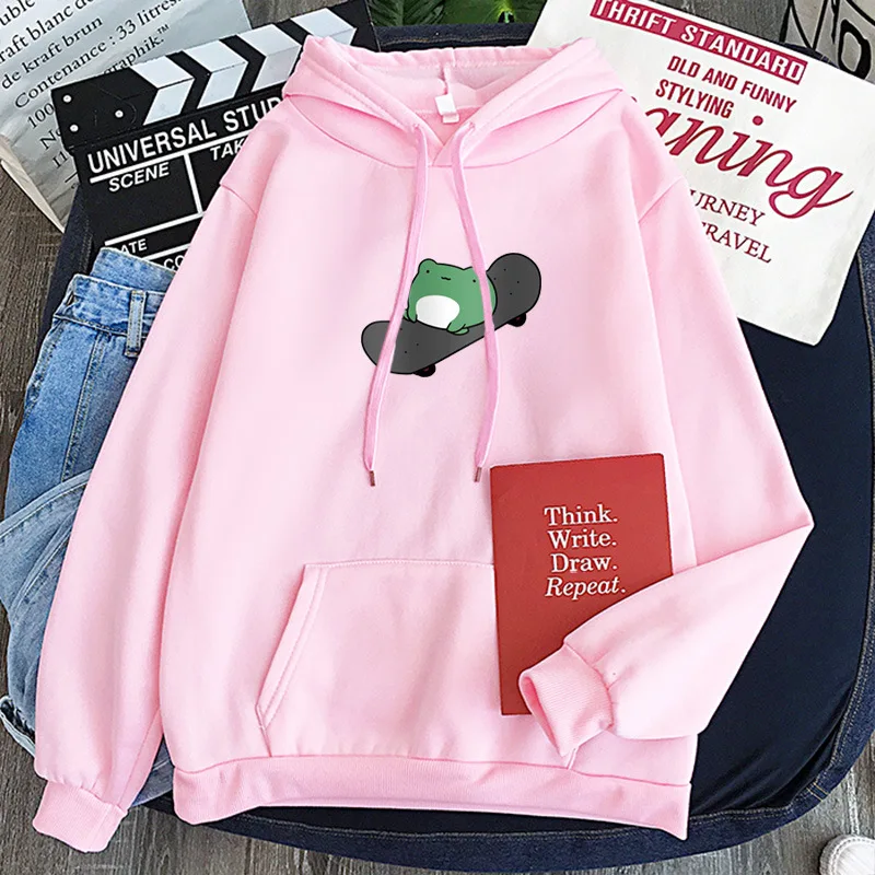 Милые толстовки с рисунком скейтборда лягушки, Модный женский пулов...