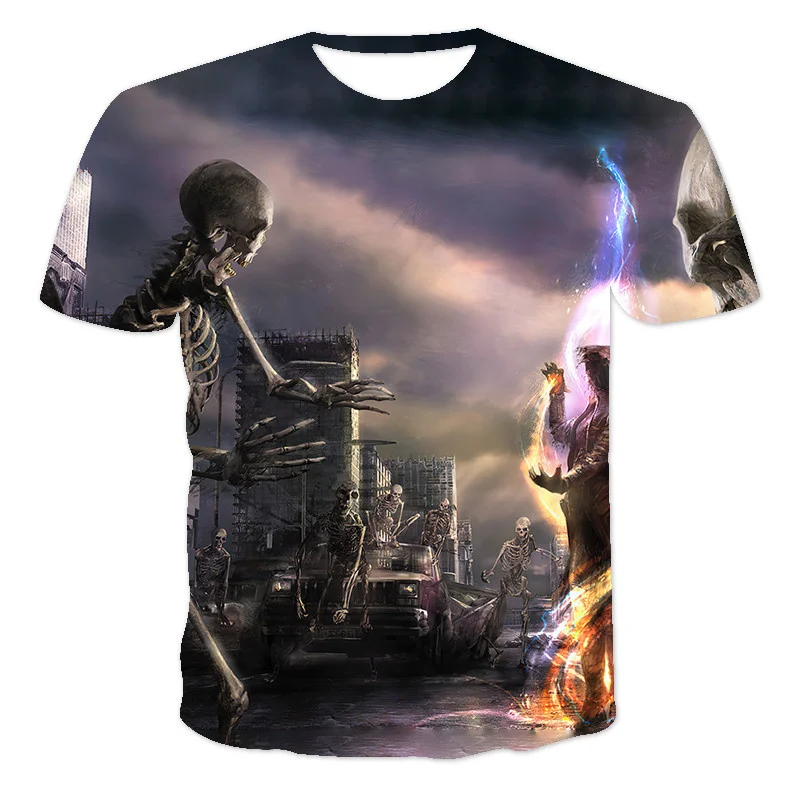 Футболка мужская с 3D-принтом ужас смерти, модная тенниска со скелетом и круглым вырезом, уличные шорты с длинными рукавами для отдыха, лето
