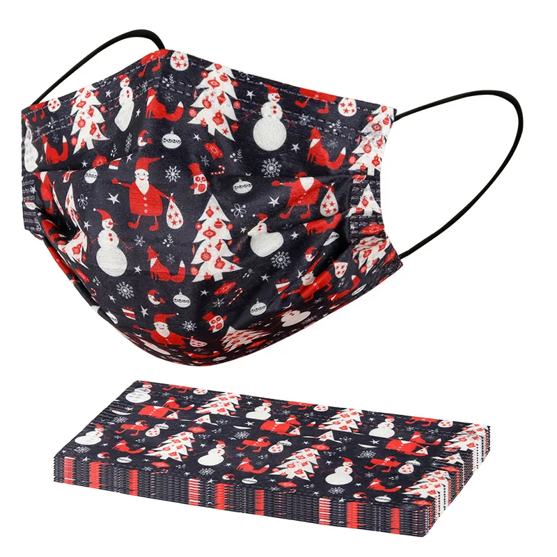 Маска для лица одноразовая, красная, с принтом деда мороза, Пылезащ...