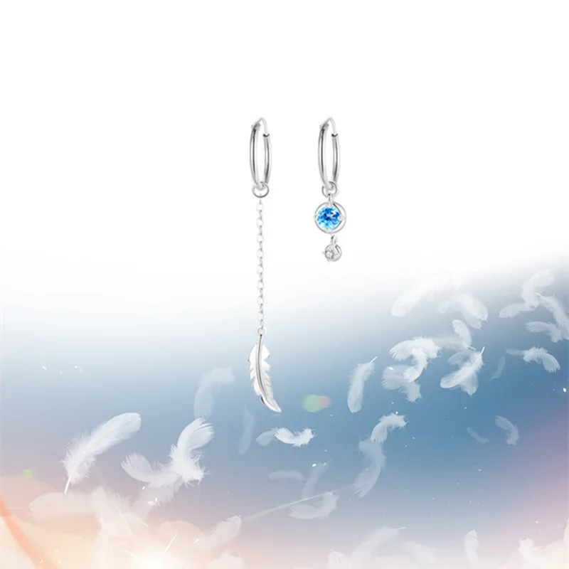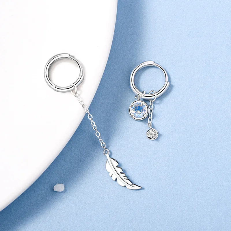 Женские серьги-кисточки с перьями CIAXY, асимметричные серьги с лунным камнем, серебристого цвета, 925