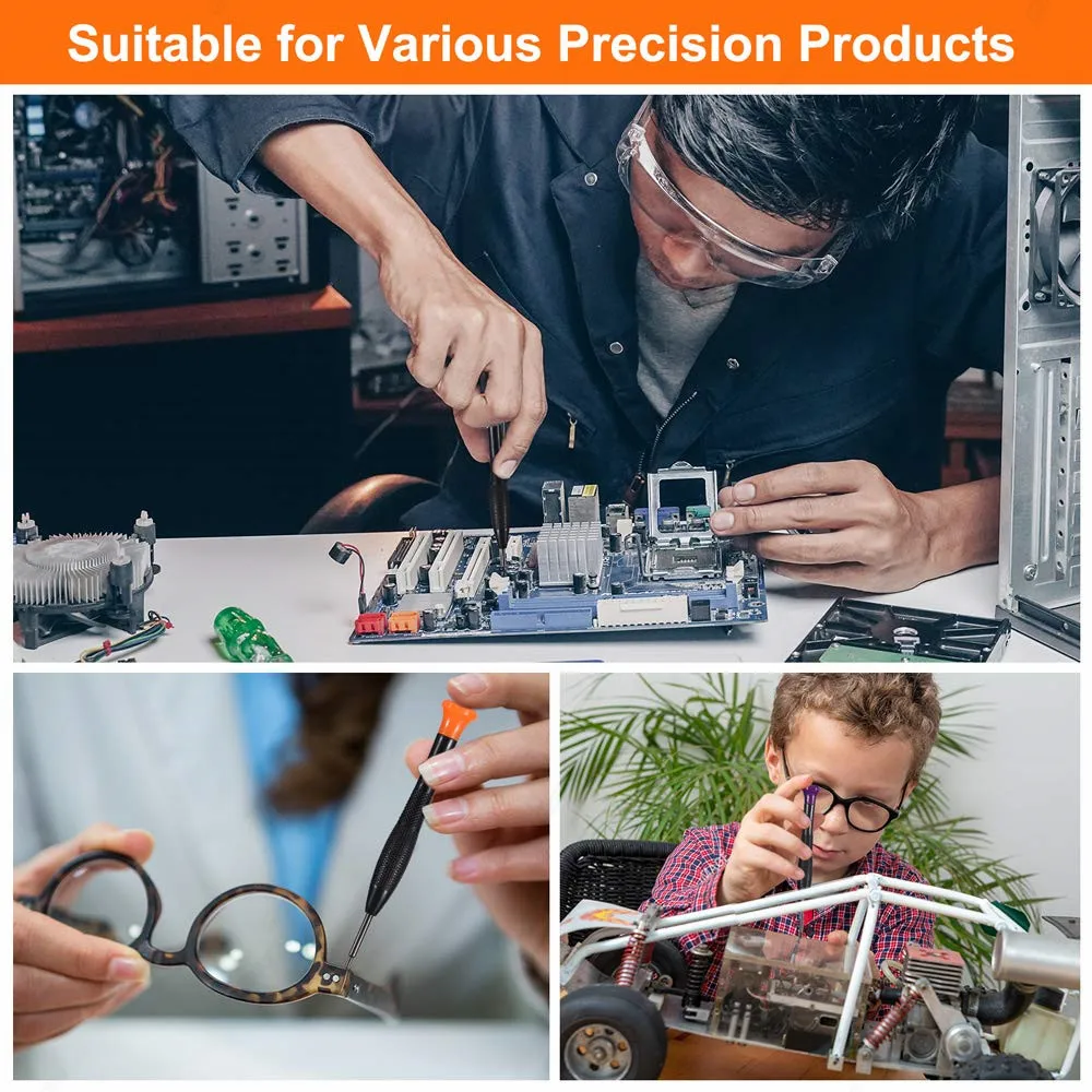 -Крошечный Набор отверток имеет вращающуюся на 360 ° конструкцию, При фиксации торцевой крышки и поворотной ручки извлечение или фиксация винтов экономят и упрощают работу.-Магнитный винт советы Водителя Легко притягивает маленькие винты, помогая не потерять винты снова и повышая скорость и эффективность работы.-Набор отверток-хороший выбор для ремонта очков, часов, электроники, игрушек и других предметов.-Головки отверток изготовлены из высококачественной стали S2, которая имеет лучшую твердость и долговечность, чем хромованадиевая сталь. Ручка из АБС-пластика с чешуей позволяет чувствовать себя комфортно и не скользит.