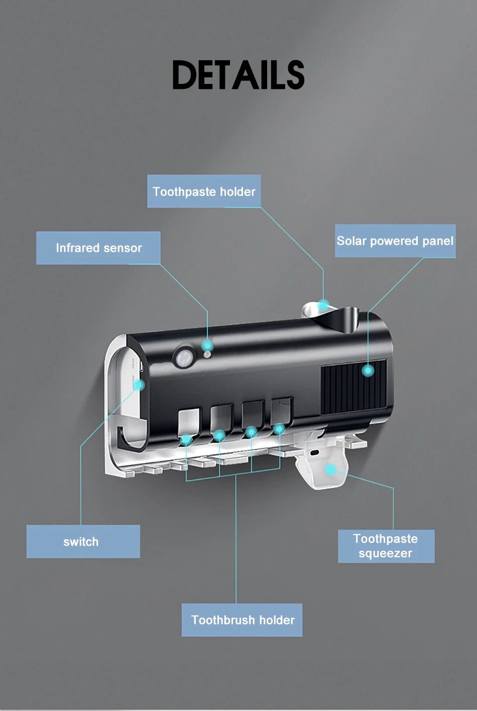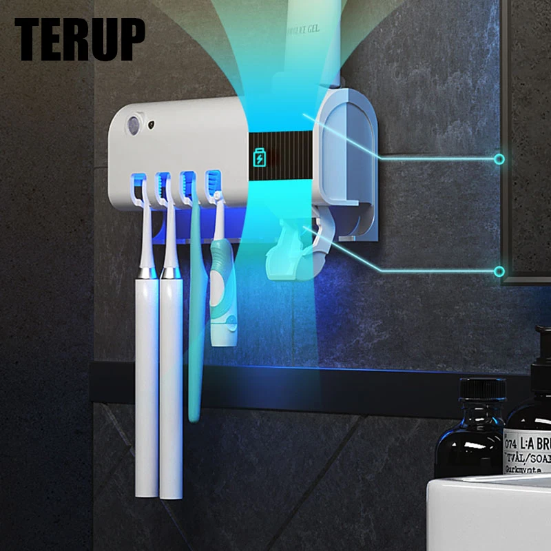 Держатель для зубных щеток TERUP на солнечной энергии, автоматический выдавливатель зубной пасты, настенный дозатор зубной пасты, аксессуары для дома и ванной комнаты