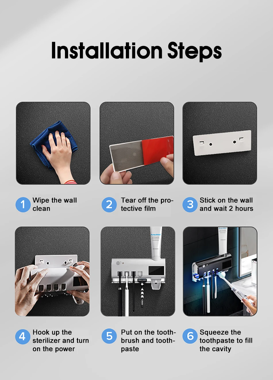 1.Многофункциональный дизайн-идеально подходит для семьи. Держатель зубной щетки может удерживать до 4 зубных щеток, будь то электрическая зубная щетка или обычная зубная щетка, взрослые, дети.