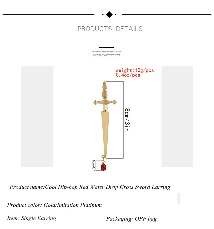 Серьги-гвоздики женские металлические в стиле хип-хоп с длинным мечом