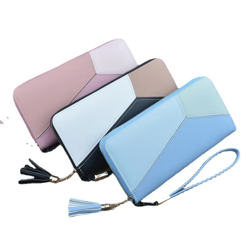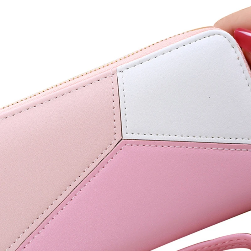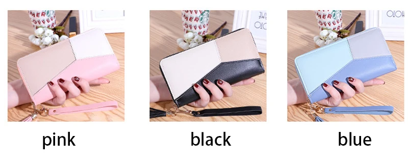 Длинный кошелек на молнии, Женский кошелек контрастных цветов, многослойная Сумка для покупок, Женский кошелек с отделениями для карт