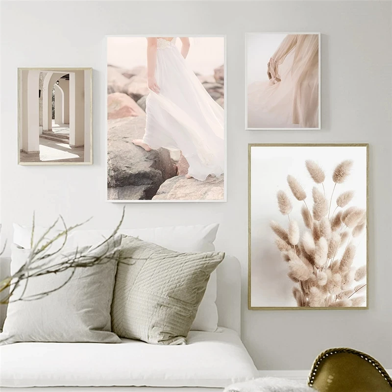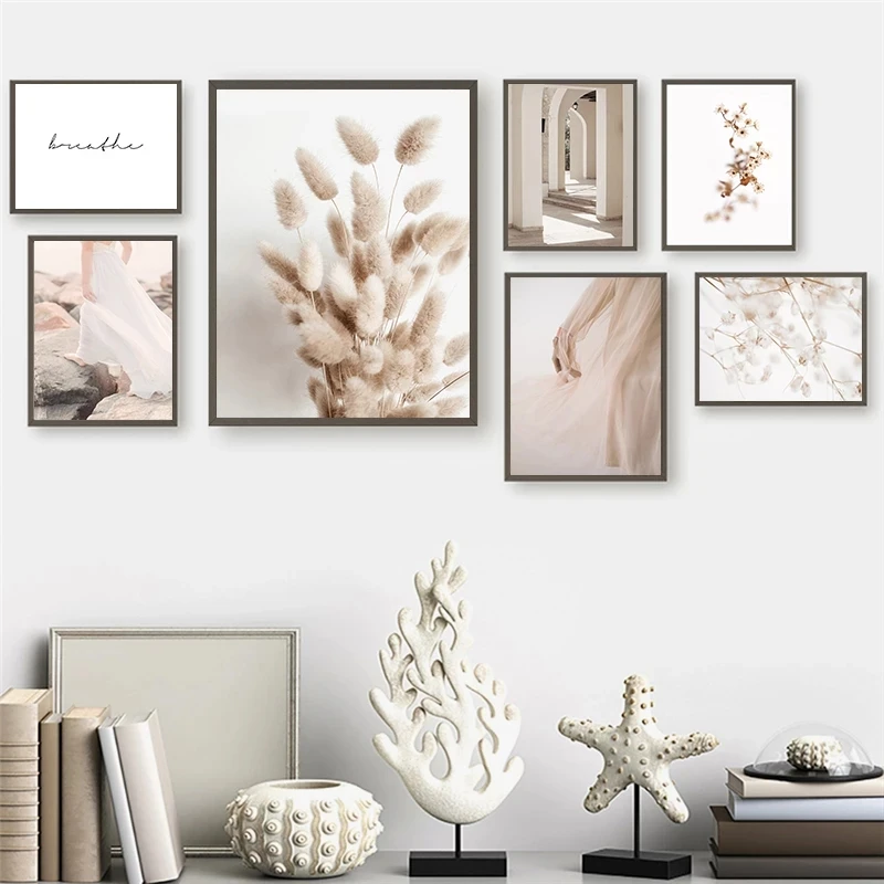 Картина на холсте с цветами в скандинавском стиле, настенная живопись, постер с травой, современное художественное оформление, домашний декор для гостиной