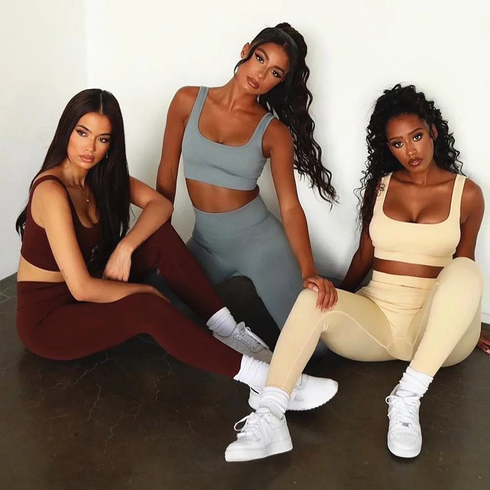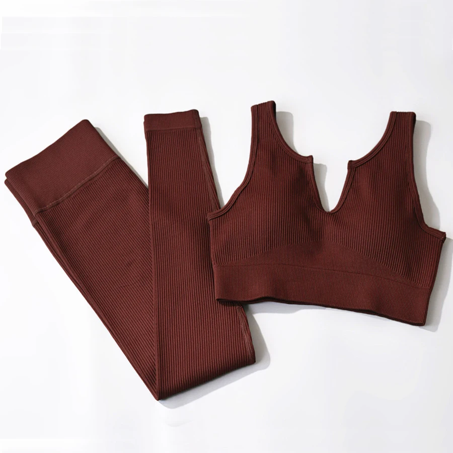 Комплект одежды для йоги 2022, бесшовные костюмы в рубчик, Леггинсы для йоги, одежда для фитнеса, женский спортивный бюстгальтер, штаны для тренажерного зала, тренировочные штаны с глубоким вырезом