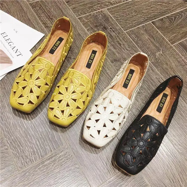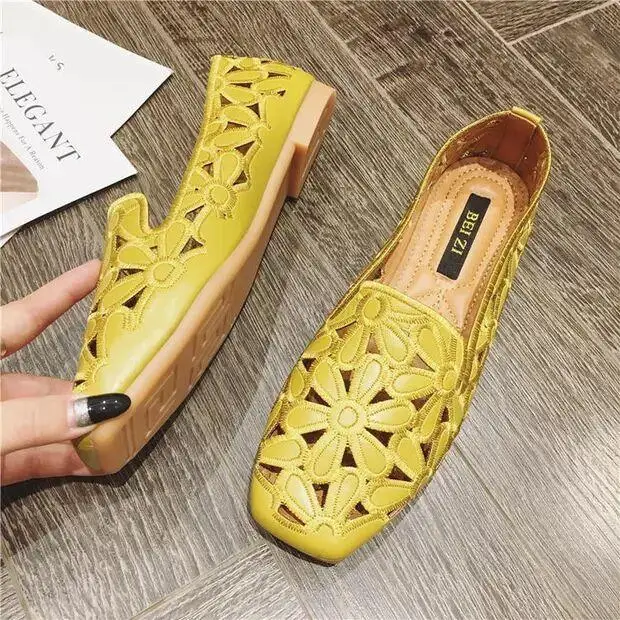 O 2022 летние туфли с квадратным носком для женщин дизайнерская обувь с вышивкой мягкие слипоны Лоферы мокасины для отдыха женские балетки на плоской подошве