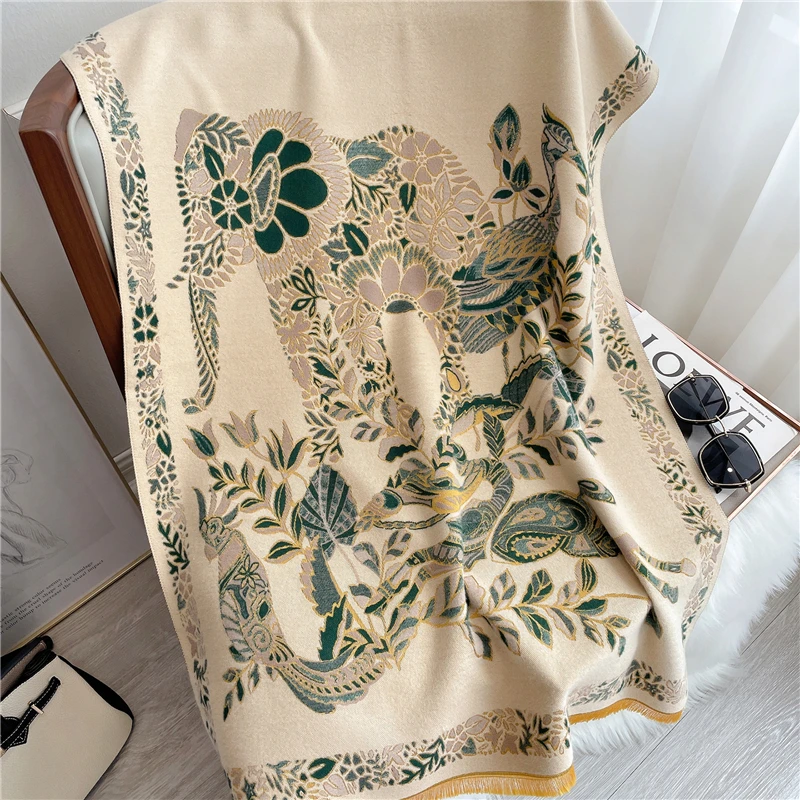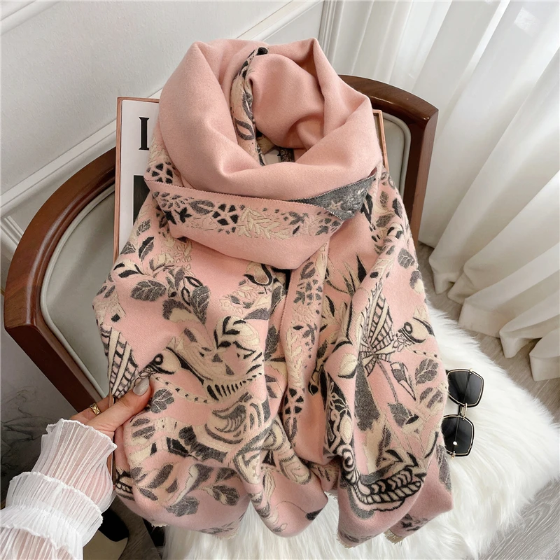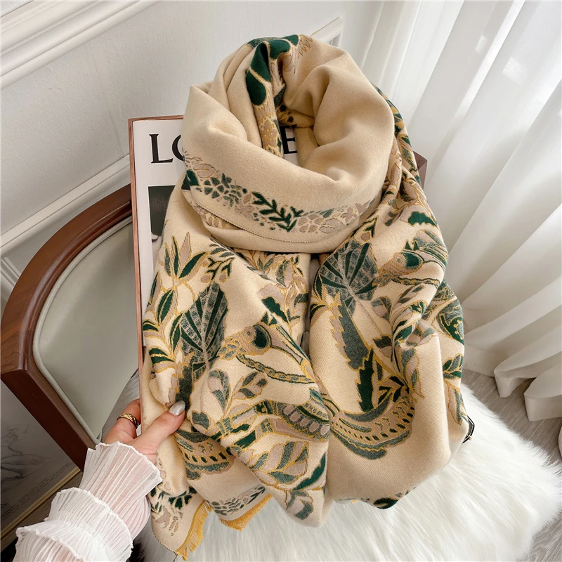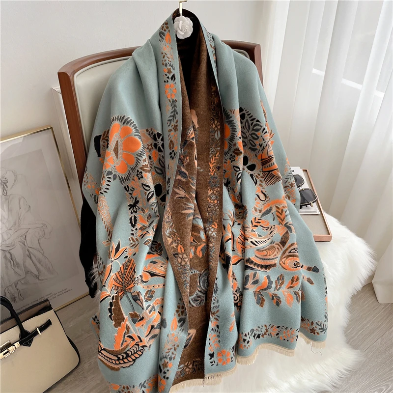 Теплый женский зимний шарф Bufandas из пашмины, Кашемировые палантины, дизайнерские Роскошные плотные хиджабные одеяла с принтом, шаль, палантины