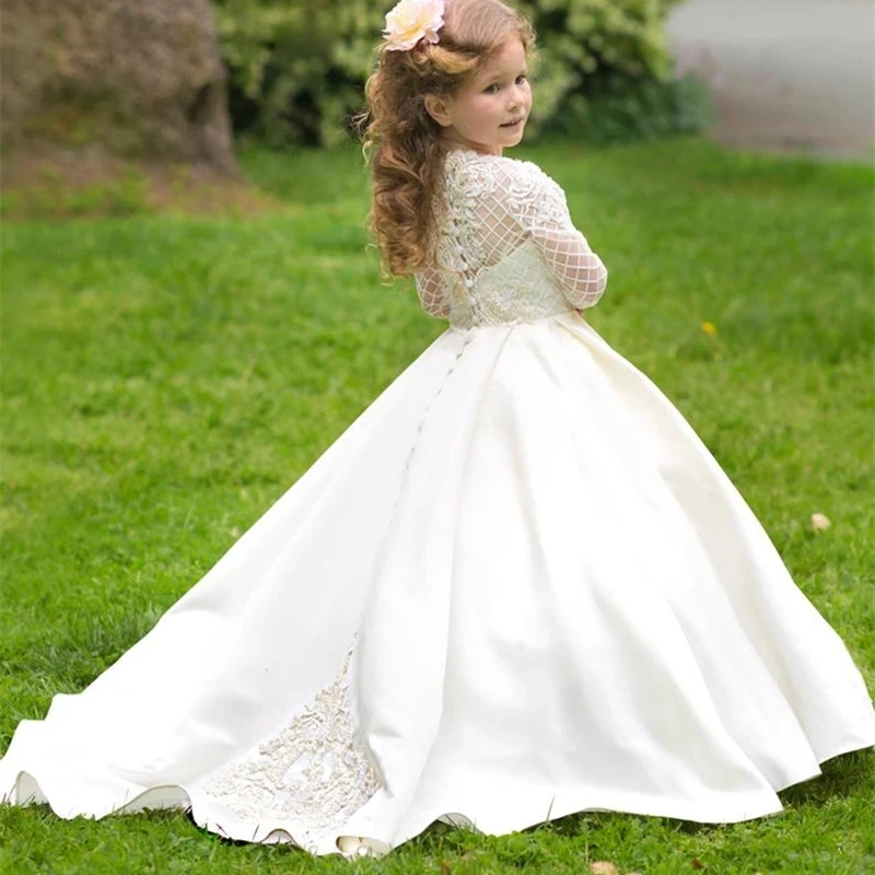 Кружевные и пятнистые платья для девочек цвета слоновой кости, детские платья для первого причастия, винтажные вечерние платья для девочек