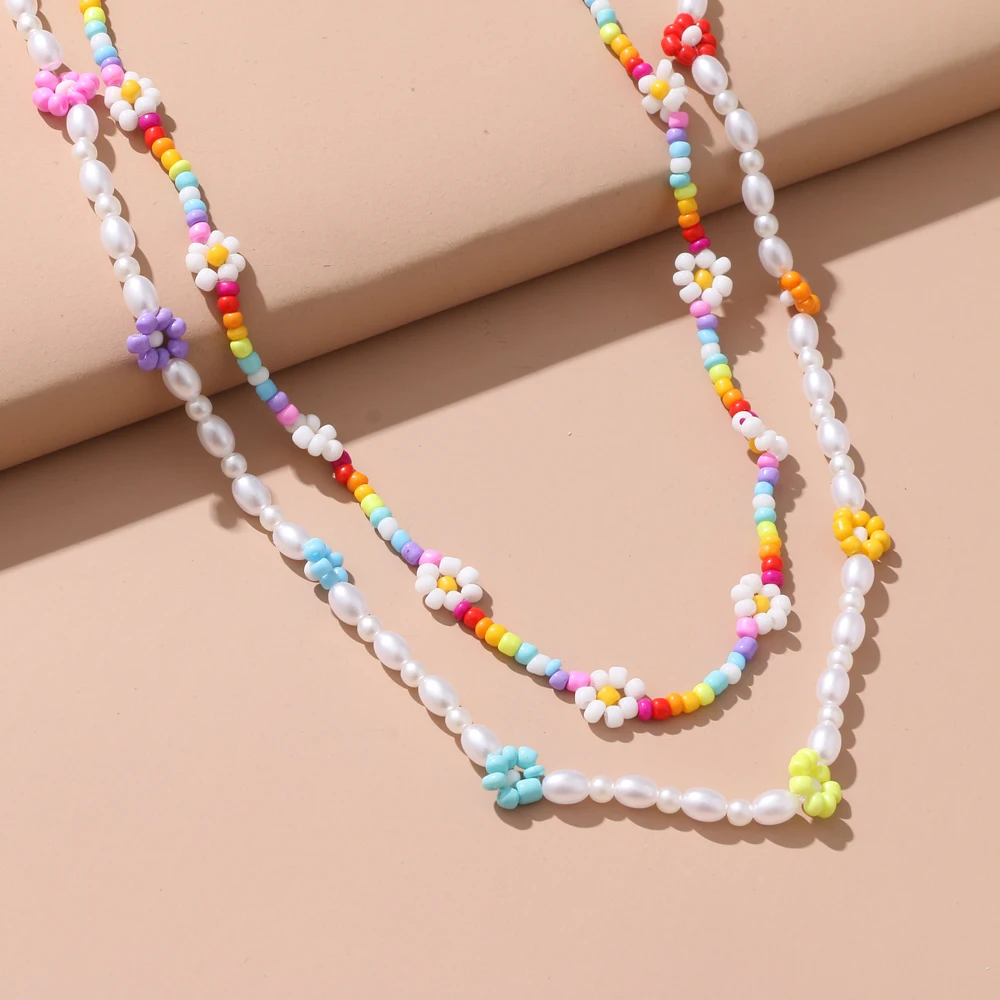 Многослойное ожерелье-чокер Y2K с цветами и бусинами для женщин и девушек, богемное жемчужное ожерелье, Женские Ювелирные изделия, подарки