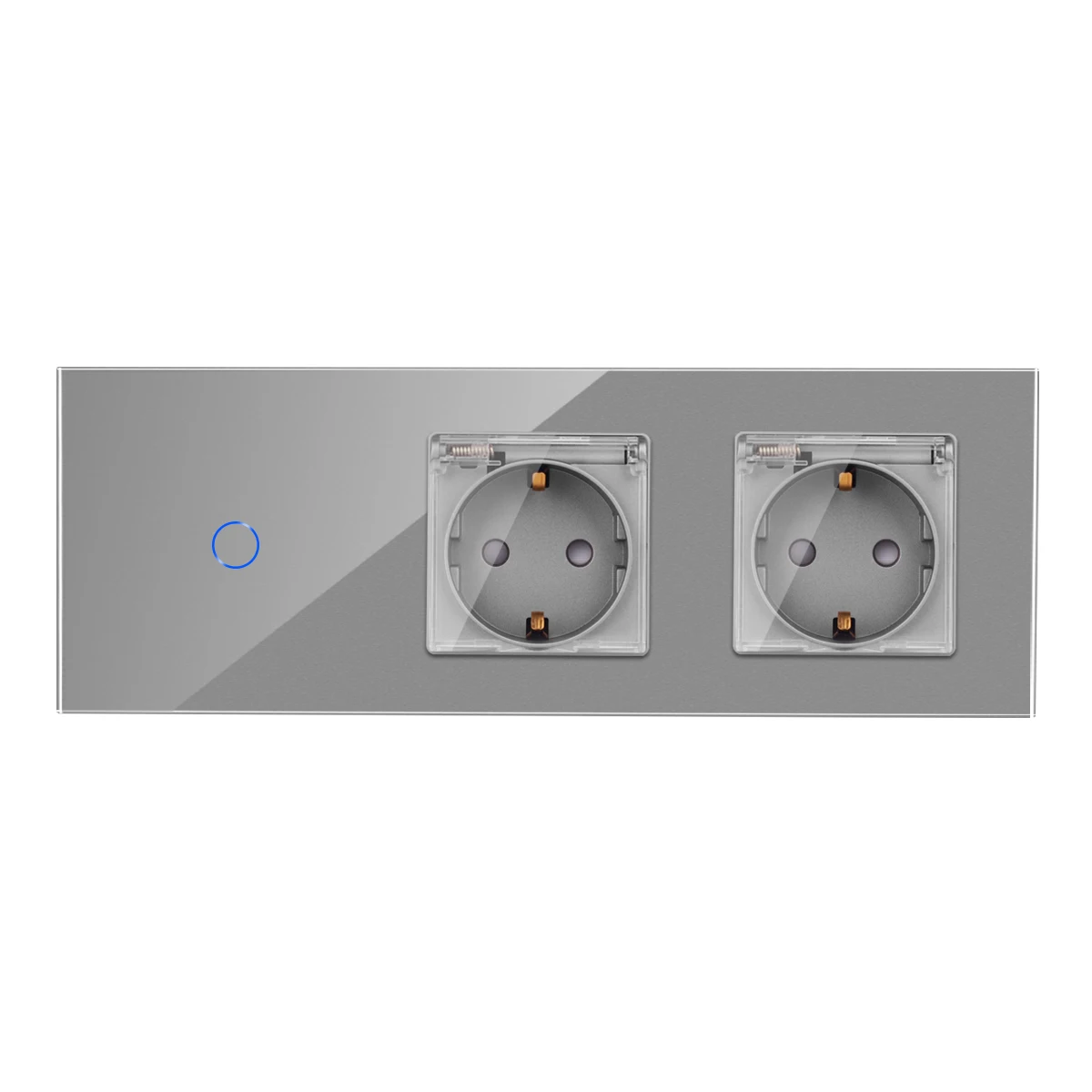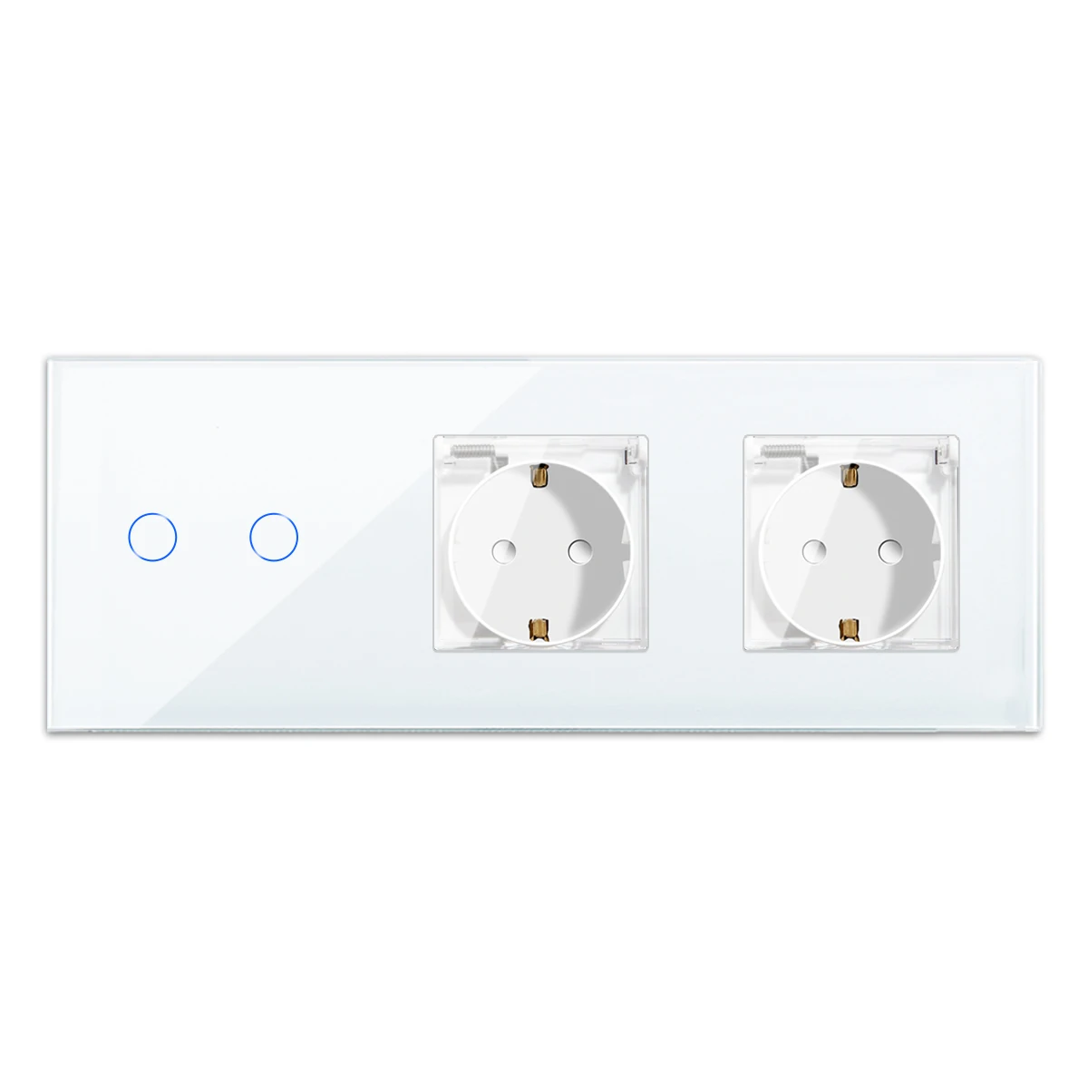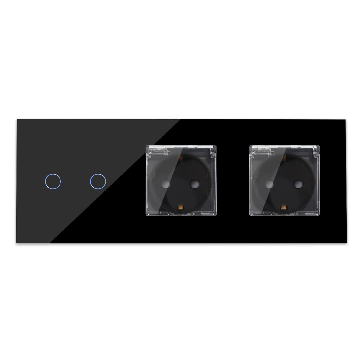 Выключатель света Bingoelec с двойной розеткой 16 А, Германия, белый, черный, Хрустальная панель, настенный сенсорный выключатель 86*229 мм, 220 В