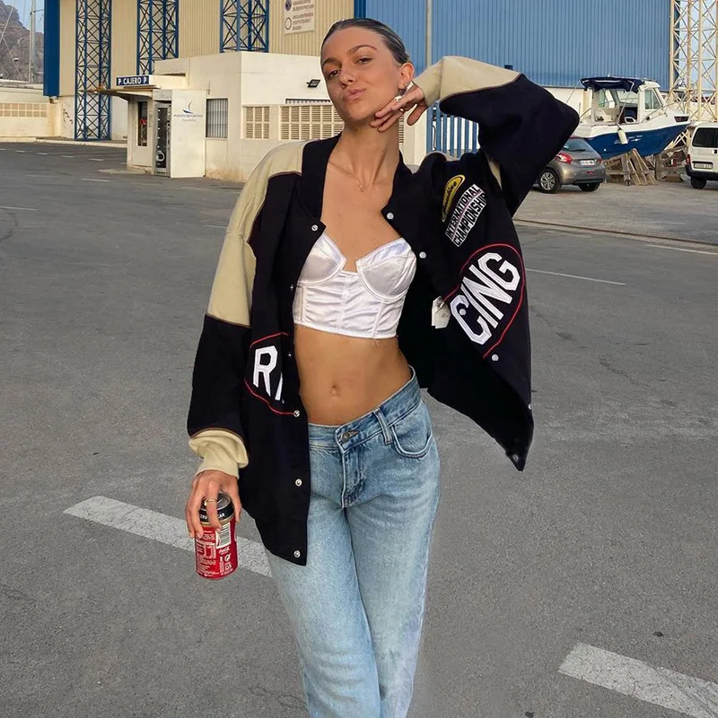 Женский свитшот Y2k, уличная одежда, бейсбольные куртки оверсайз, к...