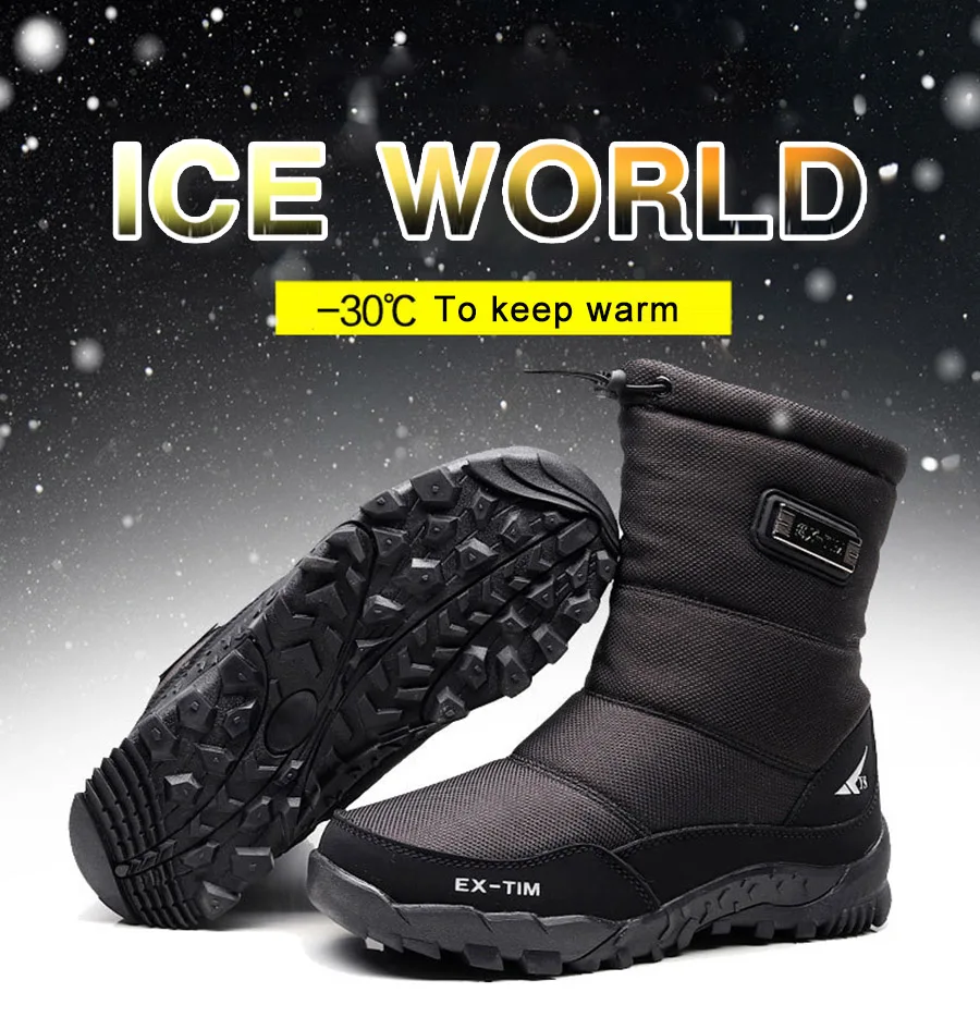 Мужские зимние ботинки, походная обувь, водонепроницаемые зимние ботинки с мехом, Зимняя Теплая обувь, Нескользящие уличные мужские ботинки на платформе, толстый плюш