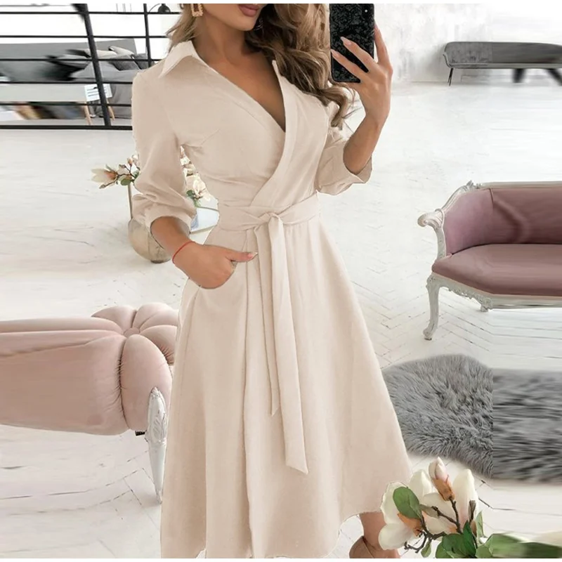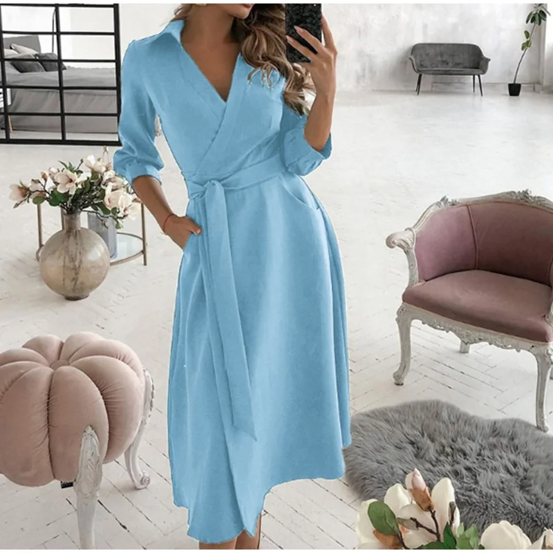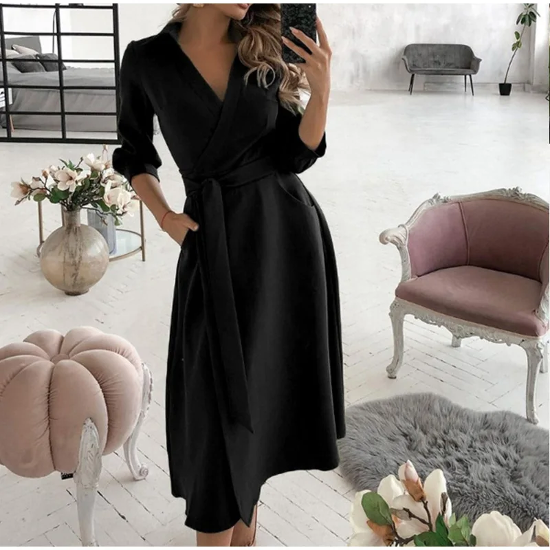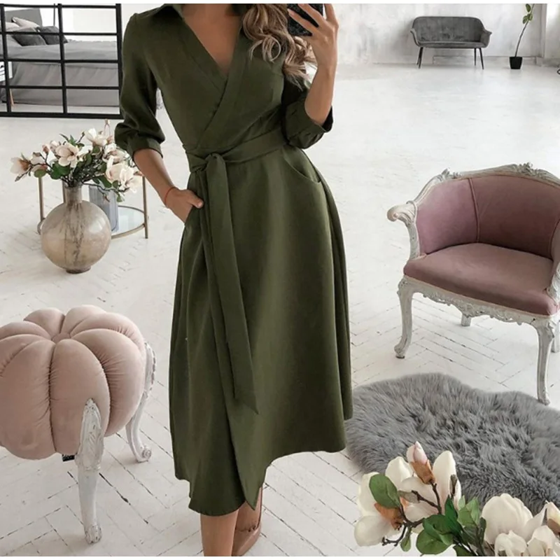 Женское однотонное платье-миди, Элегантное повседневное офисное пла...