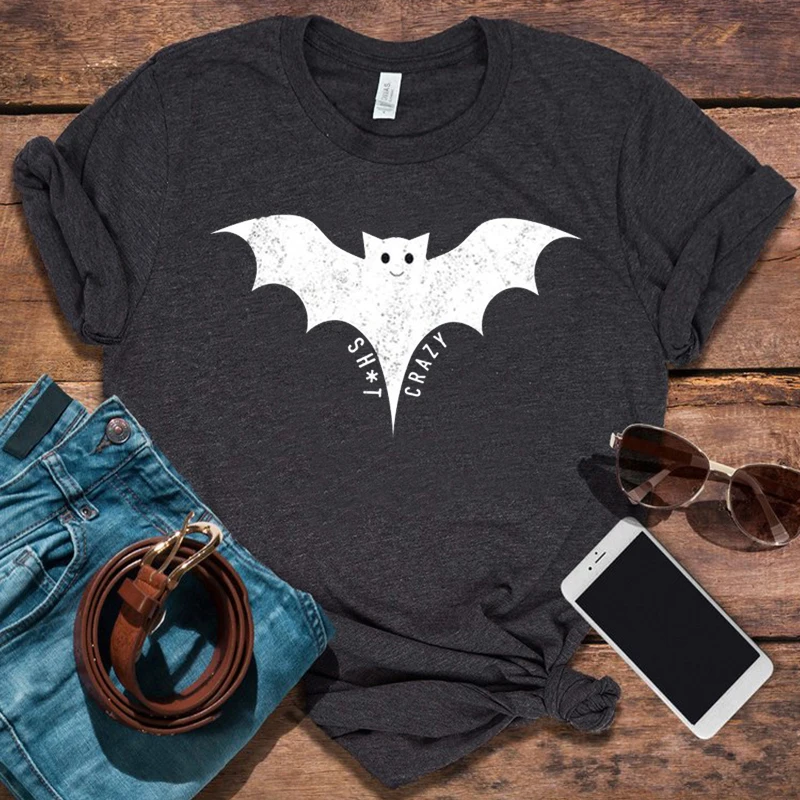 Женские рубашки в стиле Харадзюку с надписью Bat Crazy