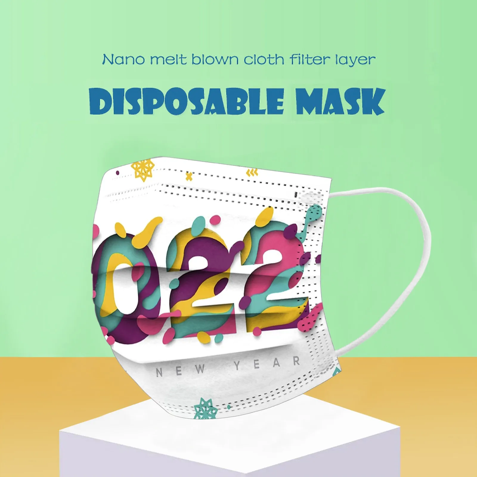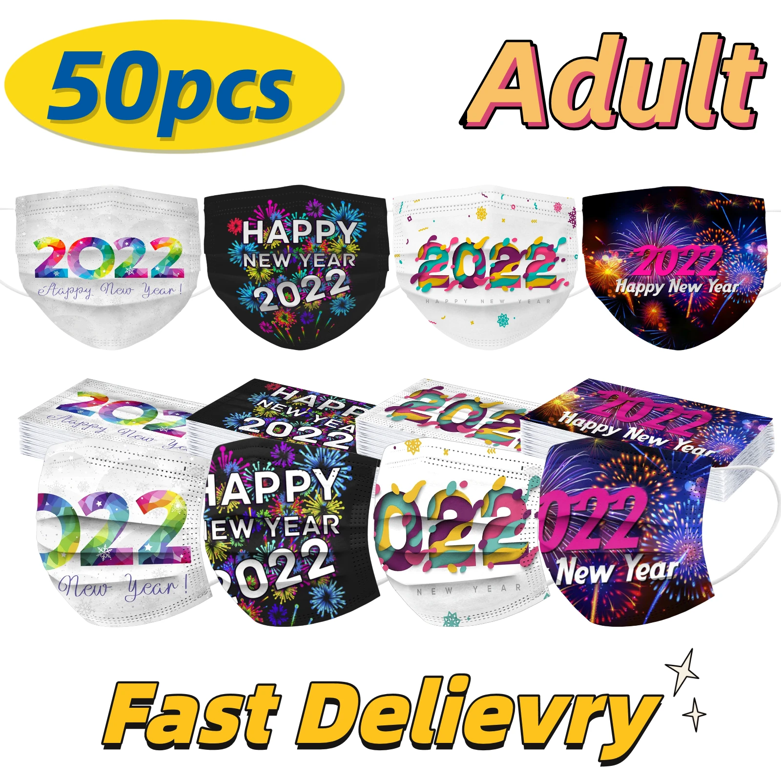 50 шт., маски для взрослых на Новый год 2022, Разноцветные Одноразовые промышленные маски 3-слойные с ушными петлями, маски для косплея на Рождество, Хэллоуин