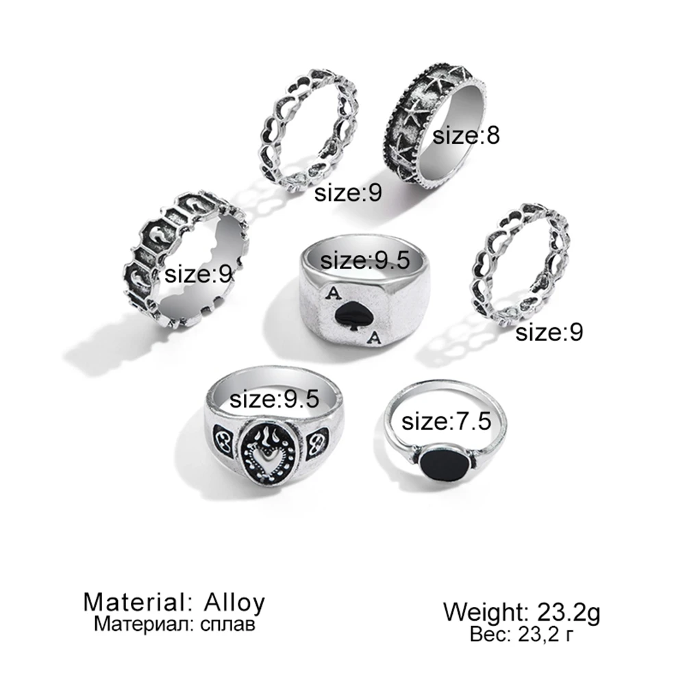 Женский набор колец VKME, в готическом стиле, с пентаграммой, в стиле ретро