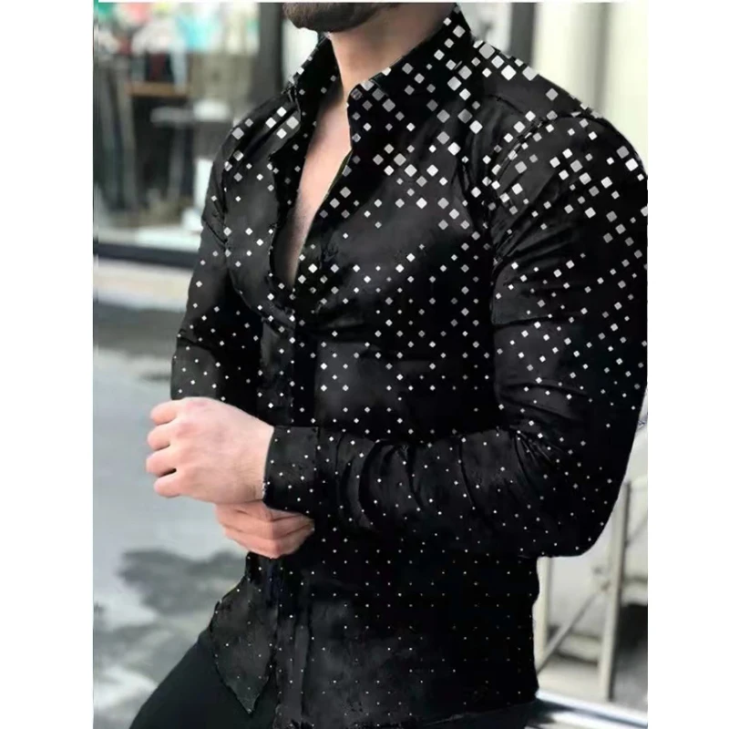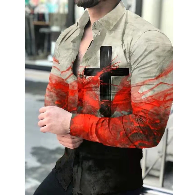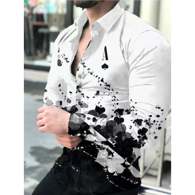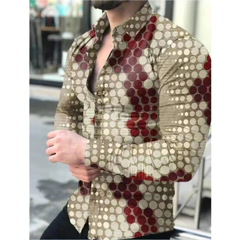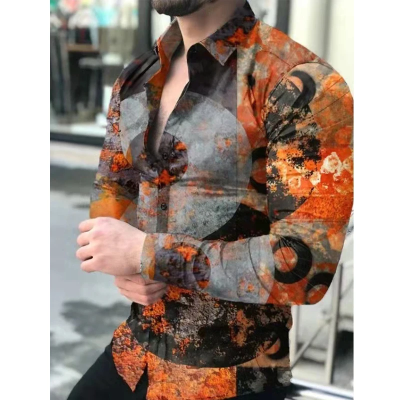 Новинка Весна 2022, мужская рубашка, Гавайская Повседневная одежда с винтажным принтом, приталенные рубашки с длинным рукавом и отложным воротником, на пуговицах, Брендовая женская одежда