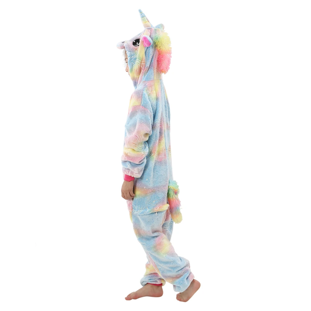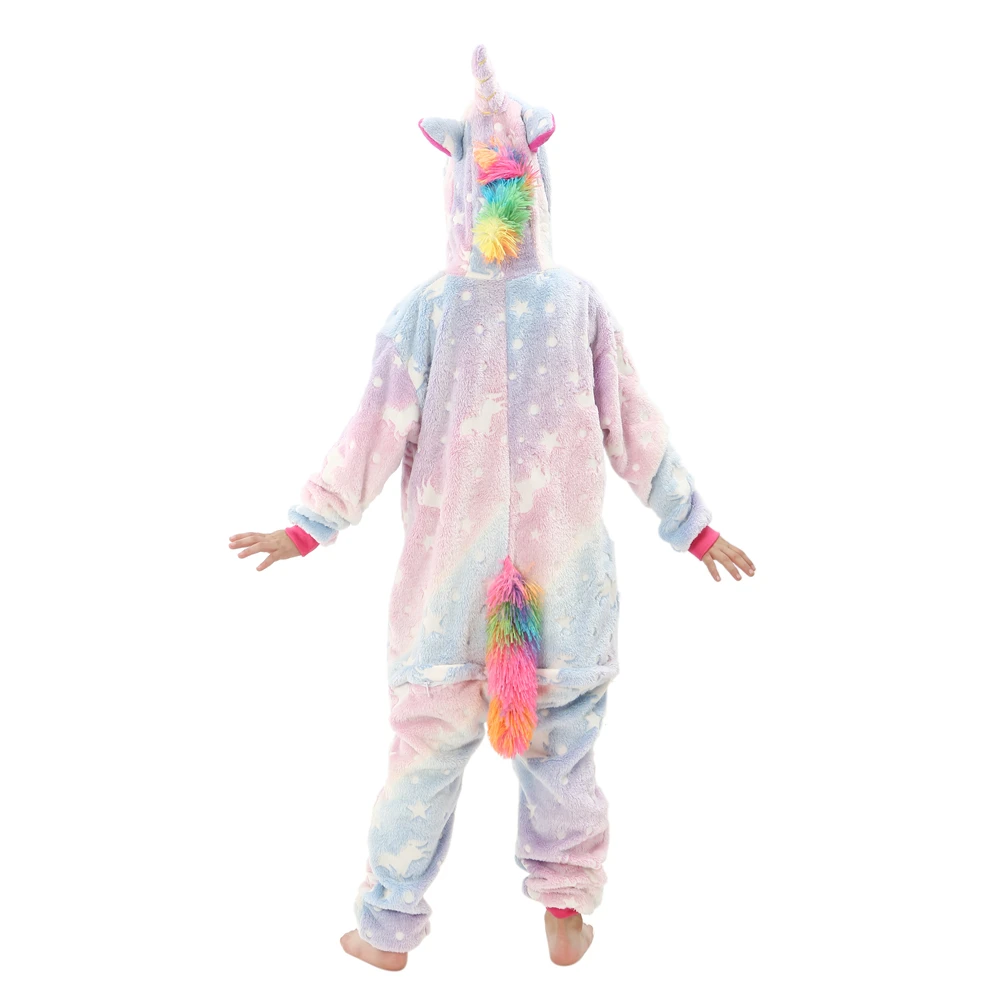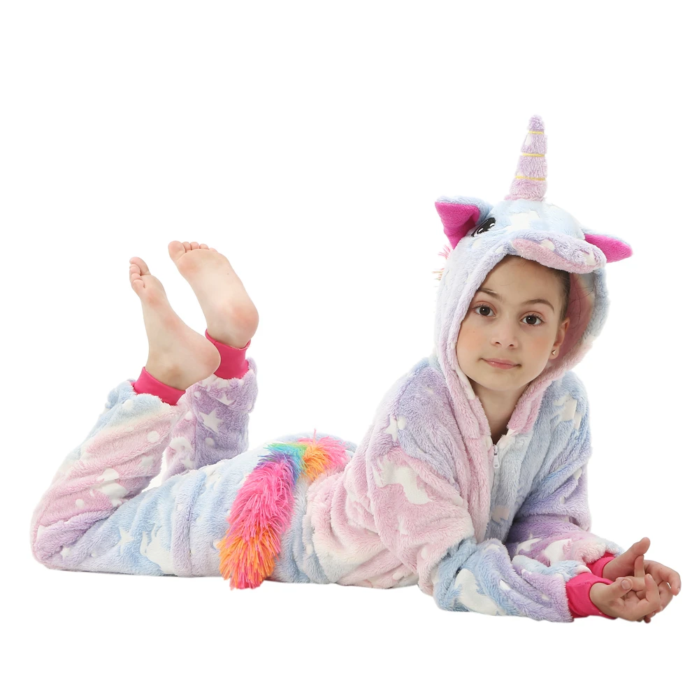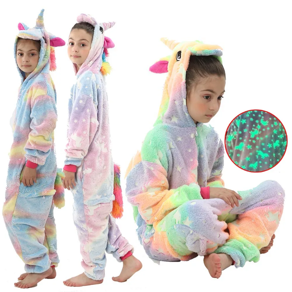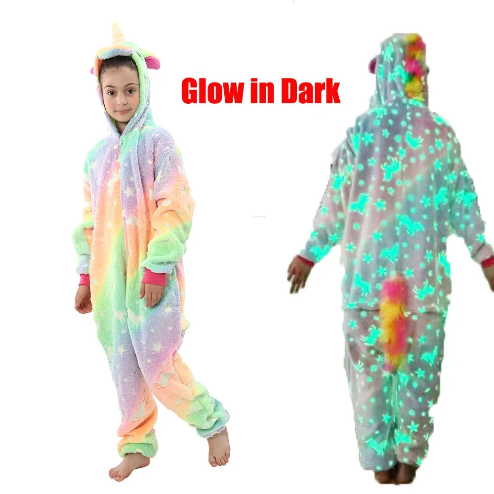 Светящиеся в темноте детские пижамы кигуруми Единорог комбинезон зимние фланелевые Комбинезоны для детей пижамы для маленьких девочек плюшевые пижамы