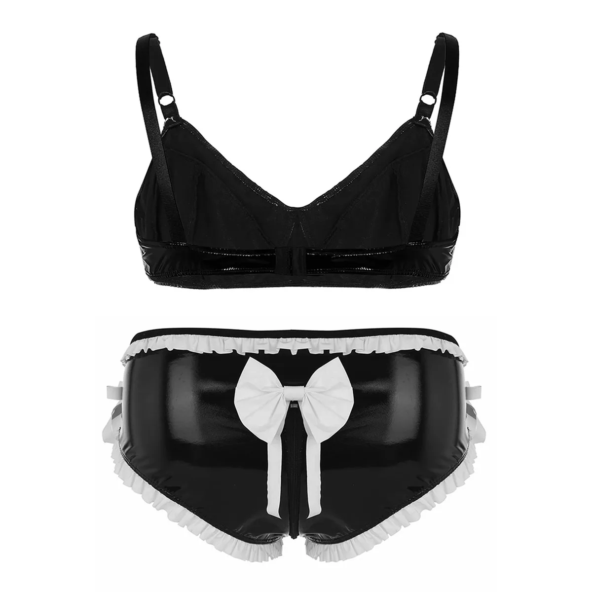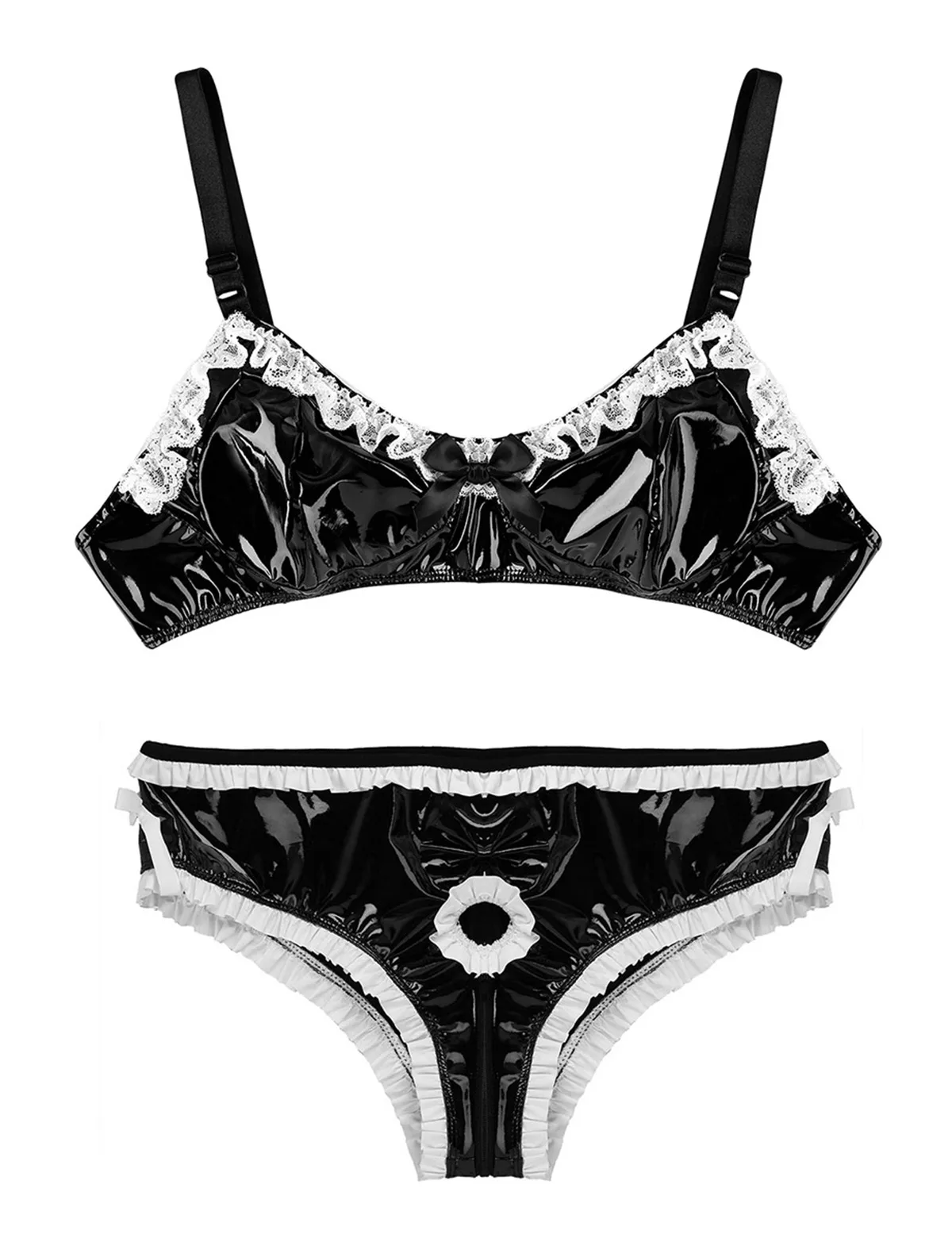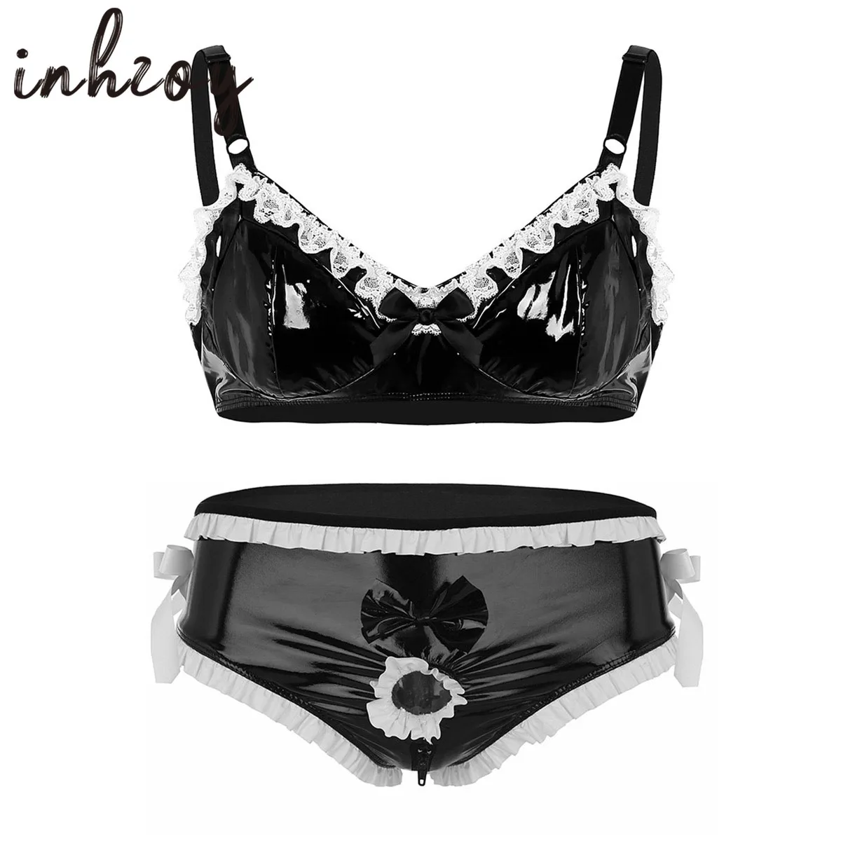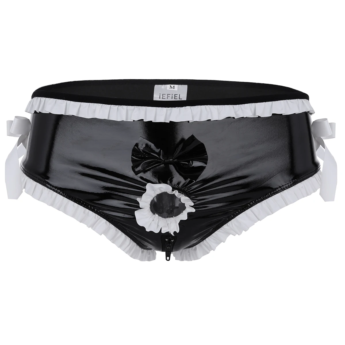 Особенности:Мужские трусы-бикини, хорошее эластичное блестящее полотно, мягкие и удобные.Эластичный пояс, дизайн с застежкой-молнией, с белой оборкой и бантом для украшения.Передняя часть с кольцом в основании вала пениса помогает продлить эрекцию.Идеально подходит для ночного белья, сюрприза перед сном или самостоятельного наслаждения.Пожалуйста, проверьте размер перед покупкой, рекомендуется ручная стирка.