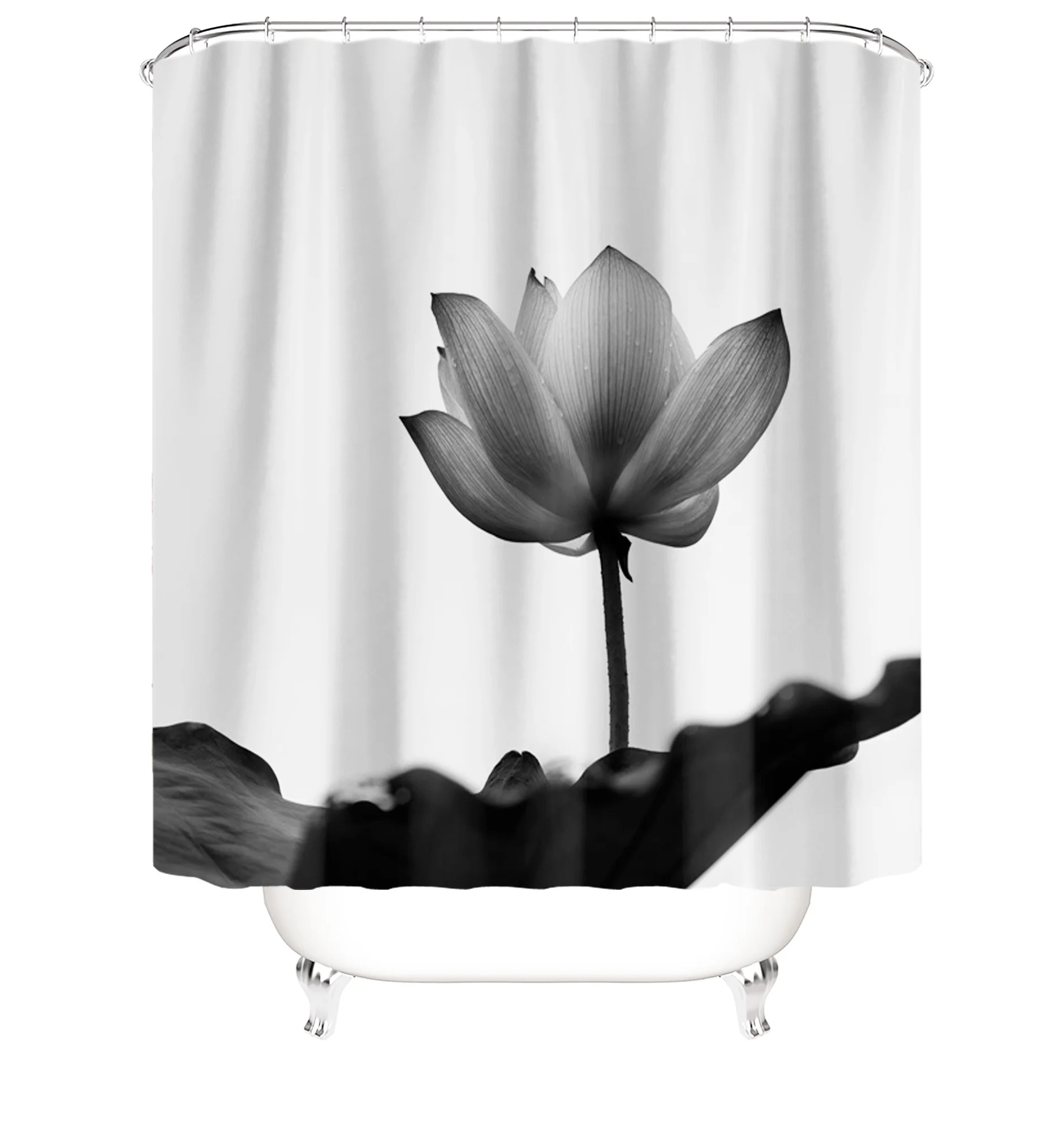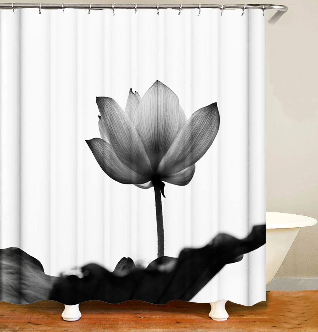 Занавеска для душа Лотос, современный комплект для ванной комнаты, модные шторы для ванной с узором, нескользящий чехол для унитаза, напольный и коврик, набор ковриков, черного и серого цвета