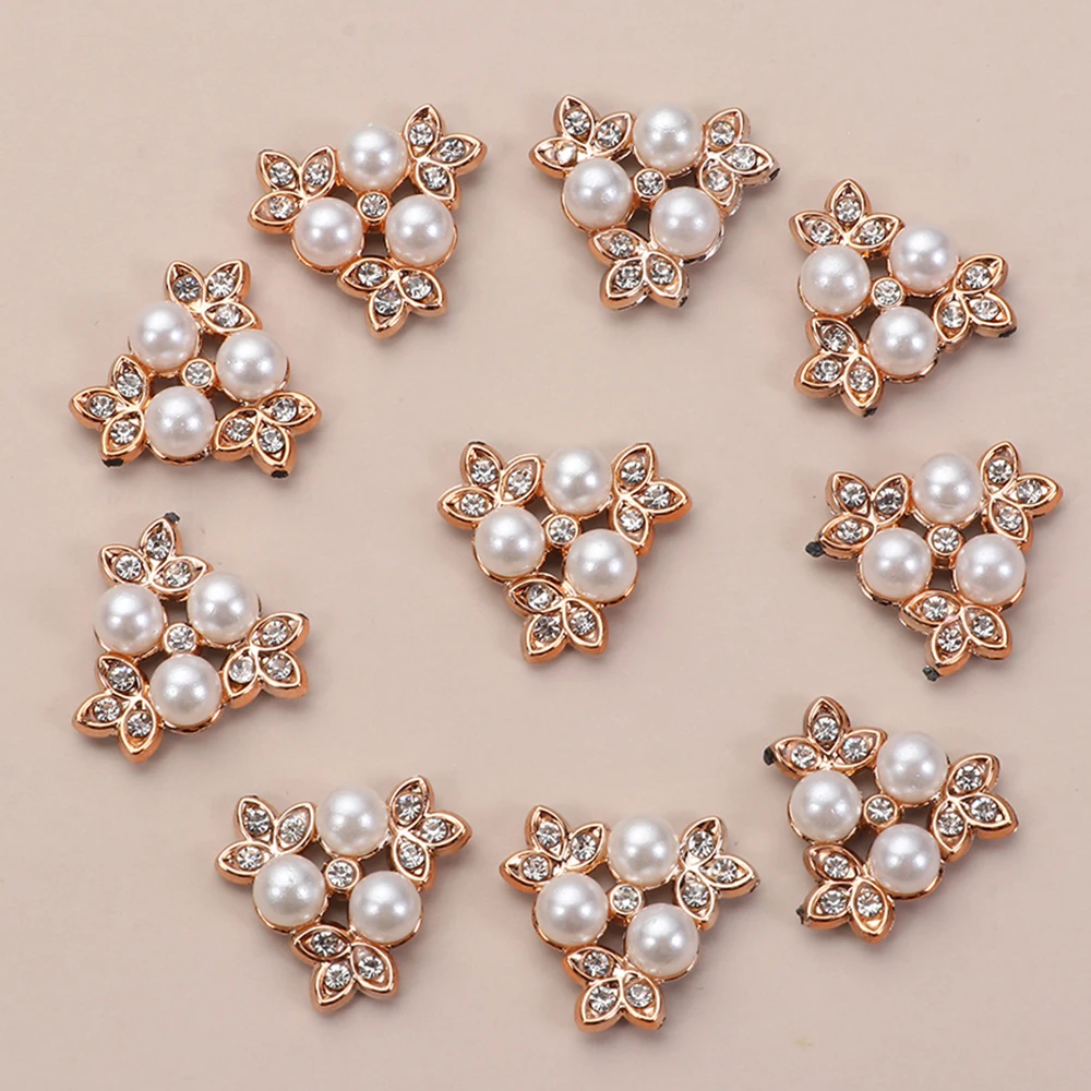 Пуговицы Стразы с жемчужинами и цветами, 10 шт., аксессуары для головных уборов с блестящими кристаллами, заколки для волос, украшения одежды, швейные инструменты для рукоделия