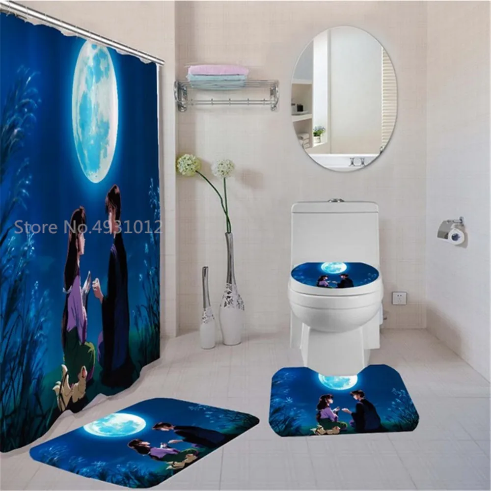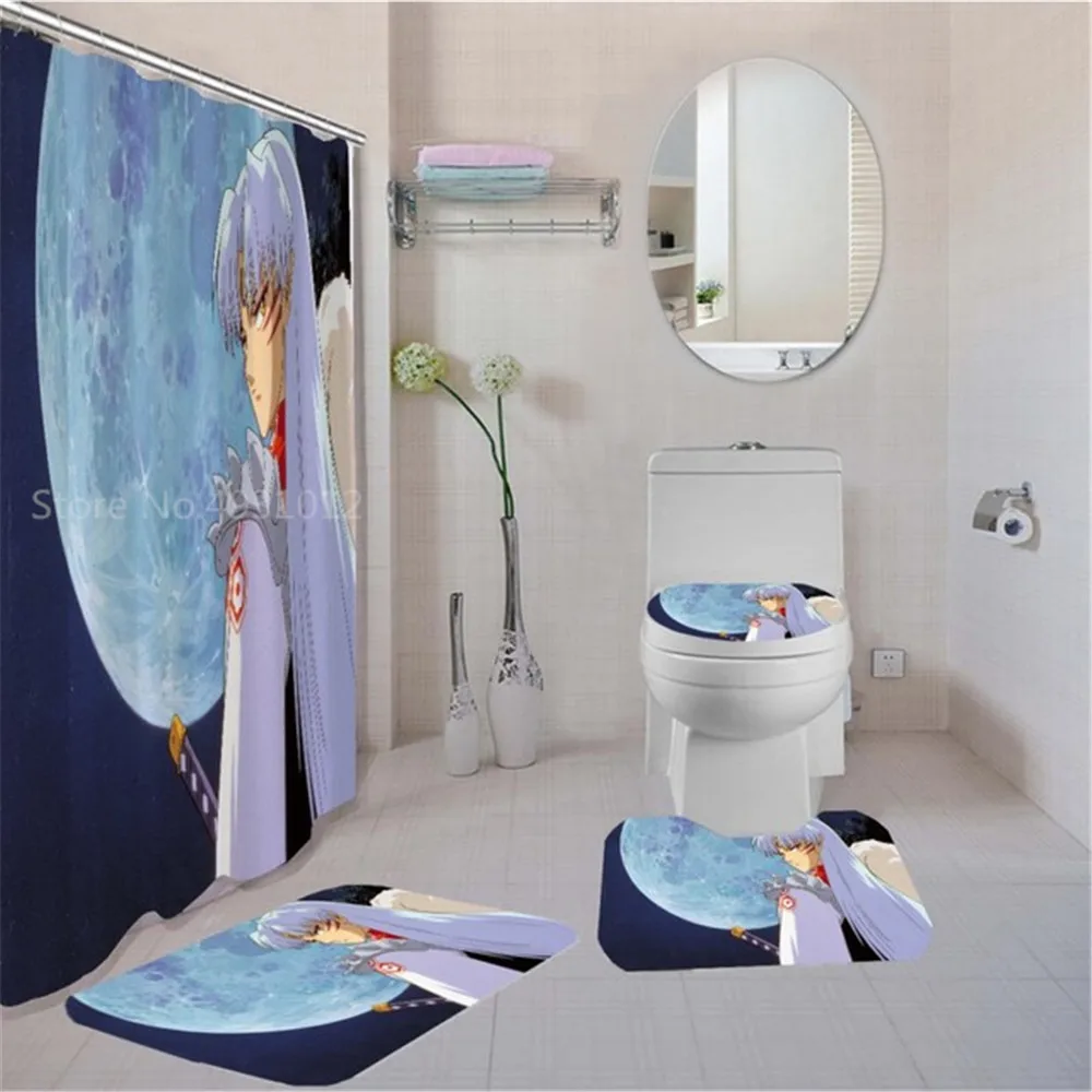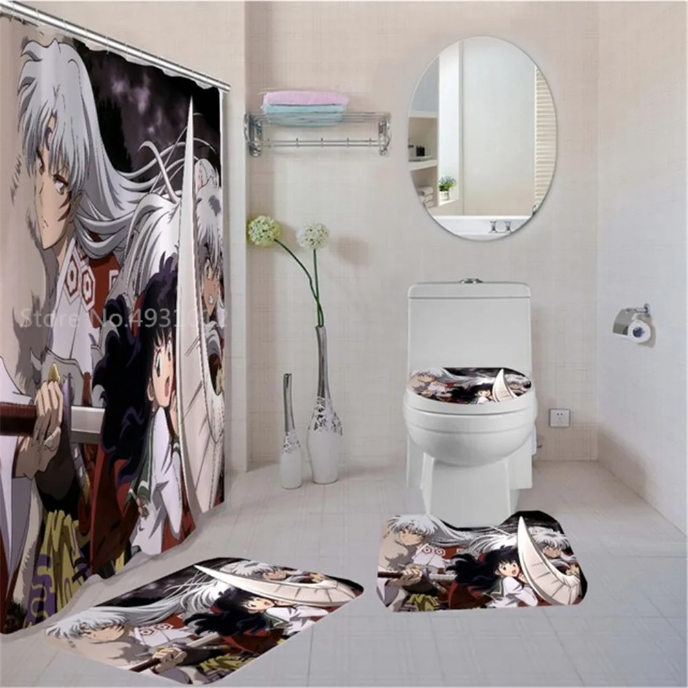 Водонепроницаемая занавеска для ванны Inuyasha, 4 шт., занавеска для душа в стиле аниме, крышка для унитаза, коврики для ванны, декоративный набор для ванной в японском стиле аниме