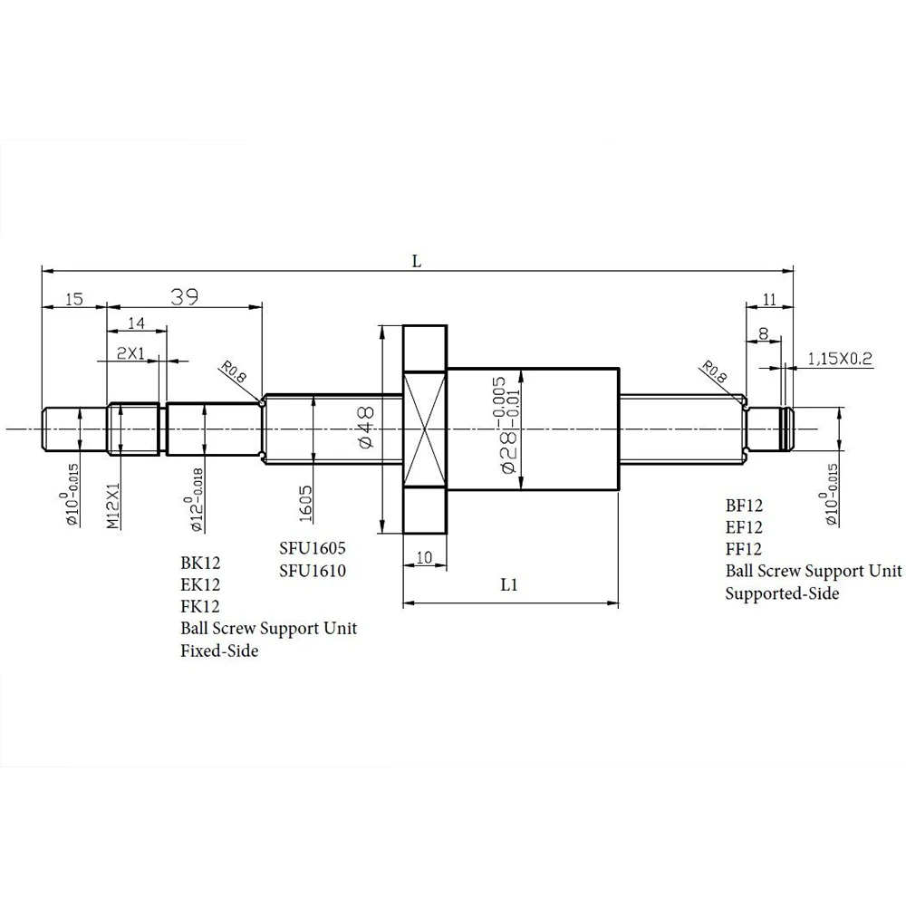Шариковый винт SFU1605 150 200 300 350 400 450 500 550 600 мм, шариковый винт C7 с одной шариковой гайкой EKEF12, обработанный на станке с ЧПУ