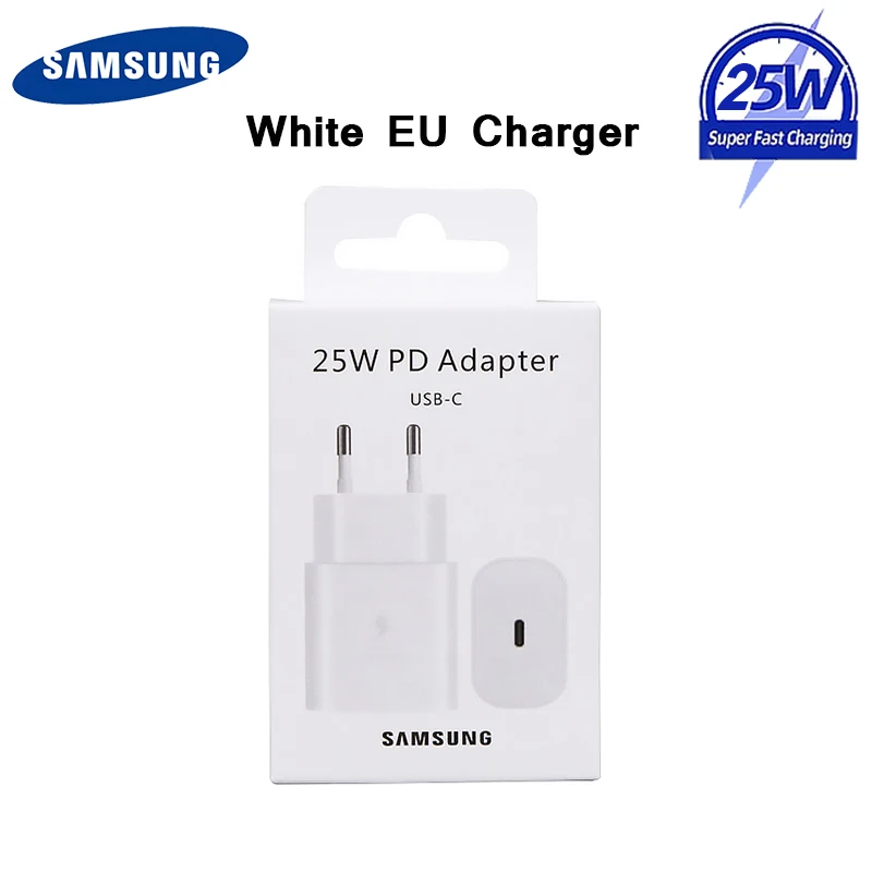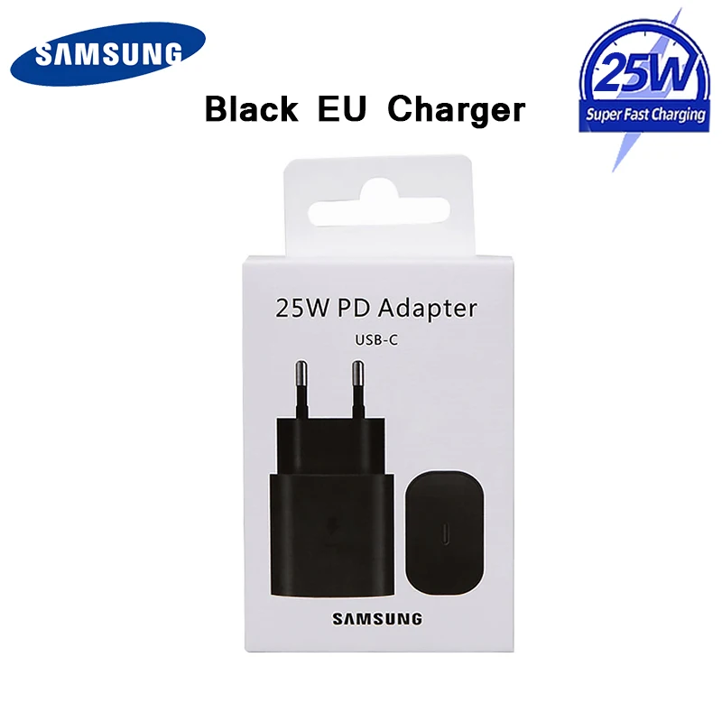 Оригинальное зарядное устройство Samsung 25 Вт Pd Быстрая зарядка EU для Galaxy S21 5G S20 S10 Note 20 10 A71 A70s A80 M51 Chargeur Carregador SamsungОсобенности:-Супер быстрое зарядное устройство Samsung Galaxy Note 10-Максимальная выходная мощность: 25 Вт-- Штепсельная вилка европейского стандарта-- Кабель USB Type-C-Type-C-- С коробкой или без коробки-Черный/белый