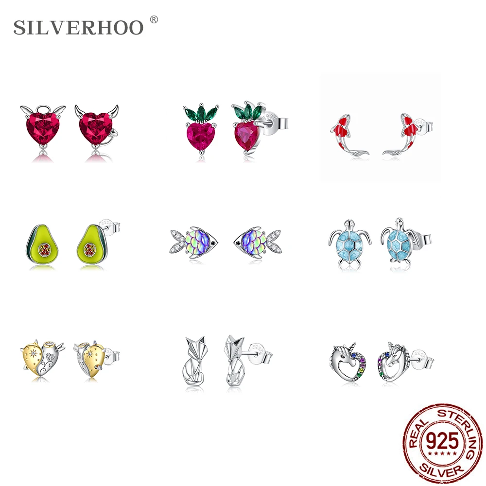 Серьги-гвоздики из стерлингового серебра 925 пробы для женщин, классические серьги с фруктами в виде животных, продвинутые женские ювелирные аксессуары, подарок