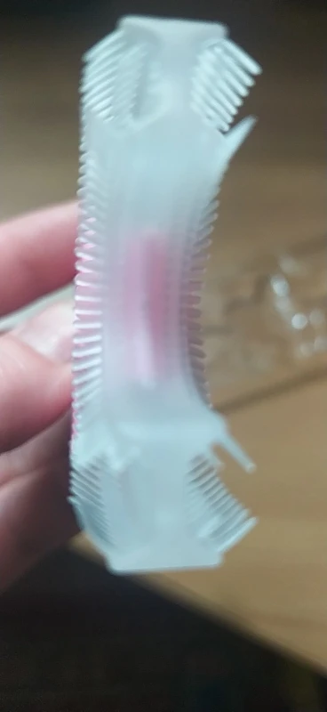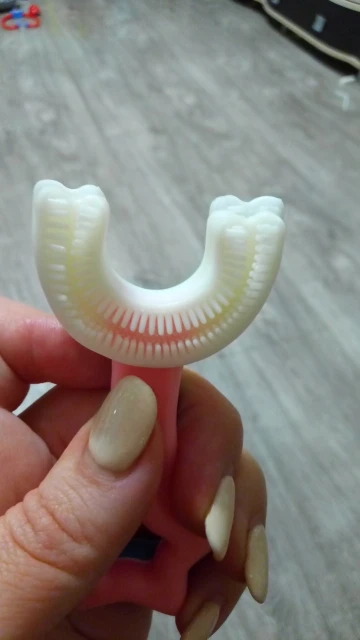 Переживала, что ребёнок откажется ею пользоваться из-за сланной формы.. он как увидел её, не хотел даже пробовать чистить, но после уговоров всё же решился и теперь только ею и чистит. Она очень мягкая с множеством силиконовых пальчиков в два ряда, очень мягкая. Не понятно на сколько тщательно она чистит, интересно, что на этот счёт думают стоматологи…