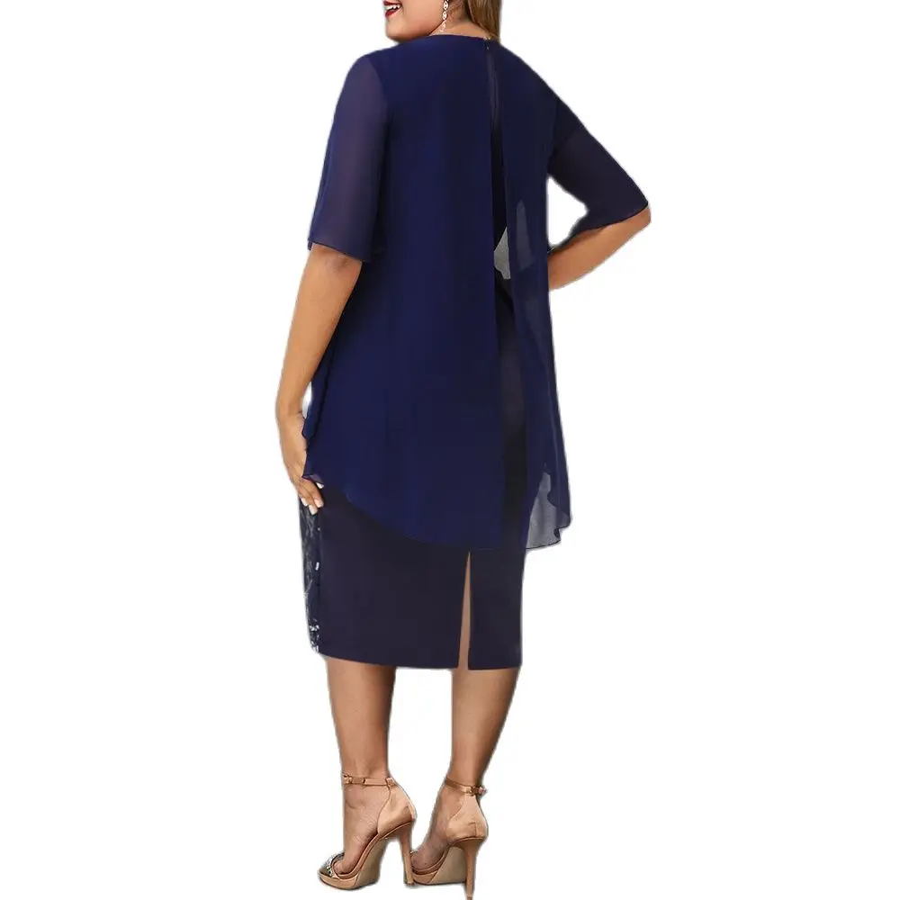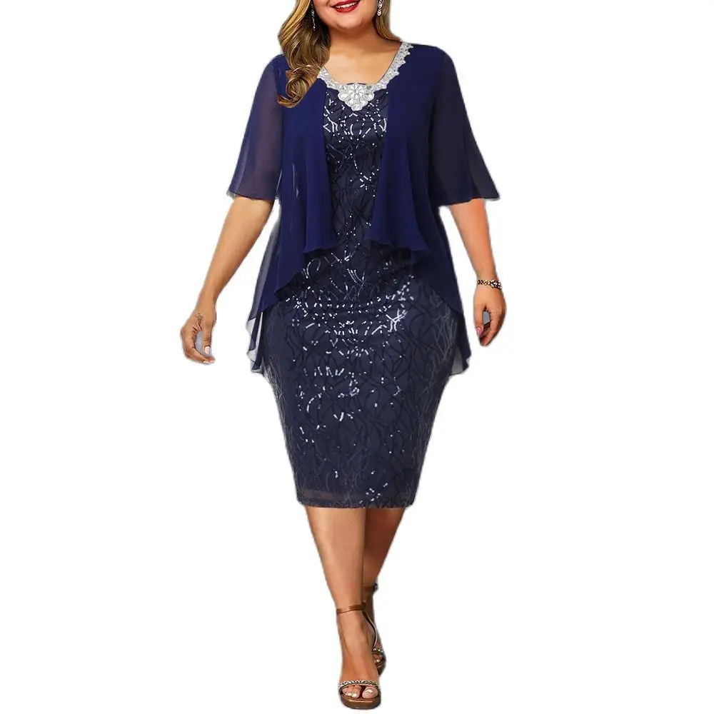 Вечерние нее платье, размера плюс, 2021, женское элегантное Сетчатое платье с блестками, в стиле пэчворк, темно-синее, осеннее, повседневное, шикарное, рождественское платье 5XL