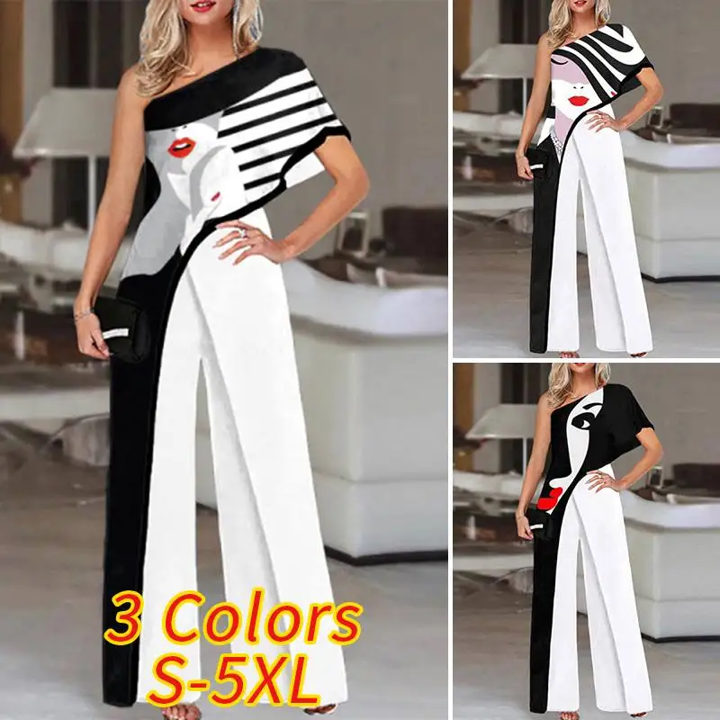 Номер моделиSummer One Shoulder Vintage Print Long Jumpsuits