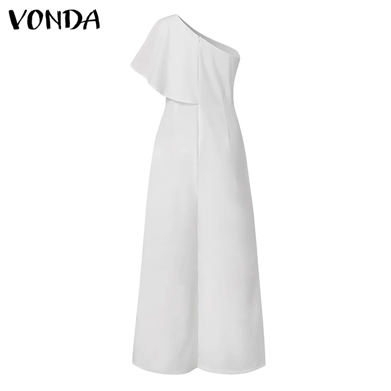 Женский Длинный комбинезон VONDA на одно плечо, пикантные комбинезоны с широкими штанинами, свободные винтажные комбинезоны с принтом Палаццо и коротким рукавом