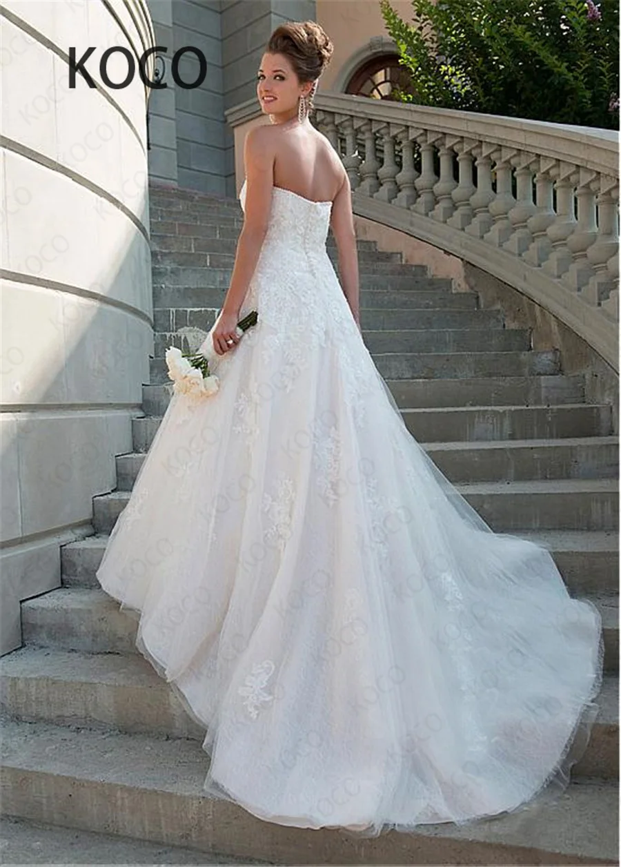 Простые, цветочные кружева, пляжные, вечерние, платья невесты, без бретелек, с открытой спиной, Vestido De Novia Civil, Женская юбка