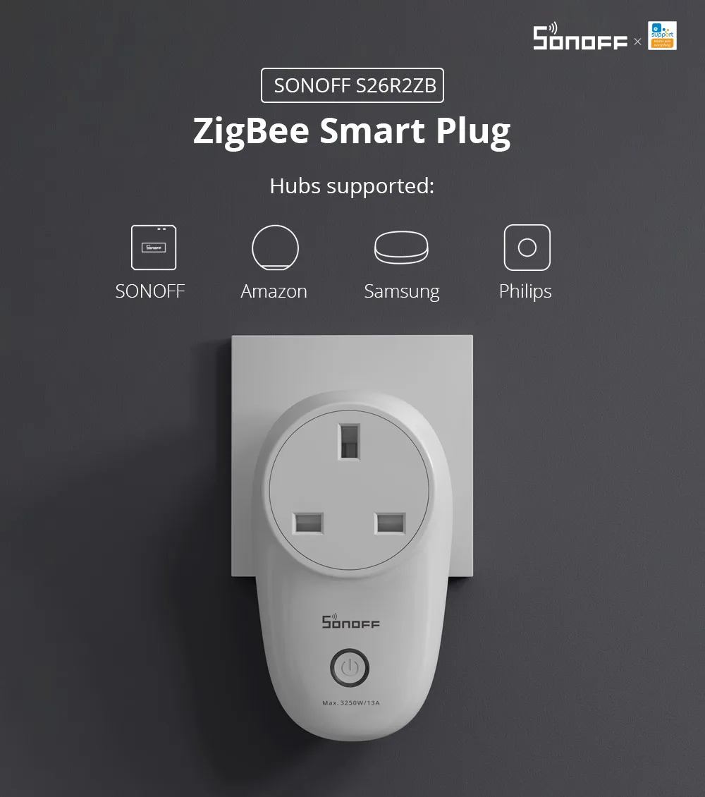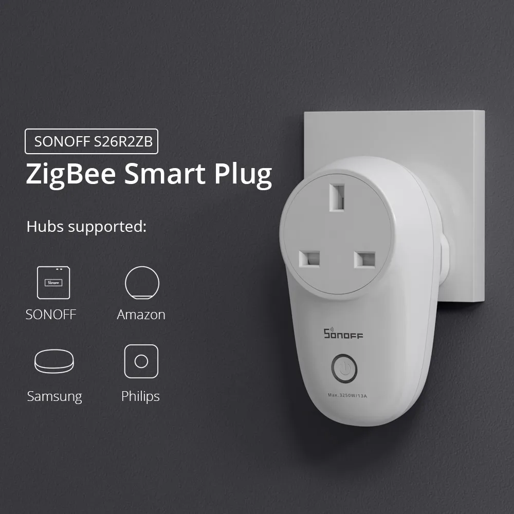 Розетка SONOFF S26R2ZB ZigBee, штепсельная Вилка для умного дома, 16 А, с голосовым дистанционным управлением, работает с SONOFFZBBridge Alexa