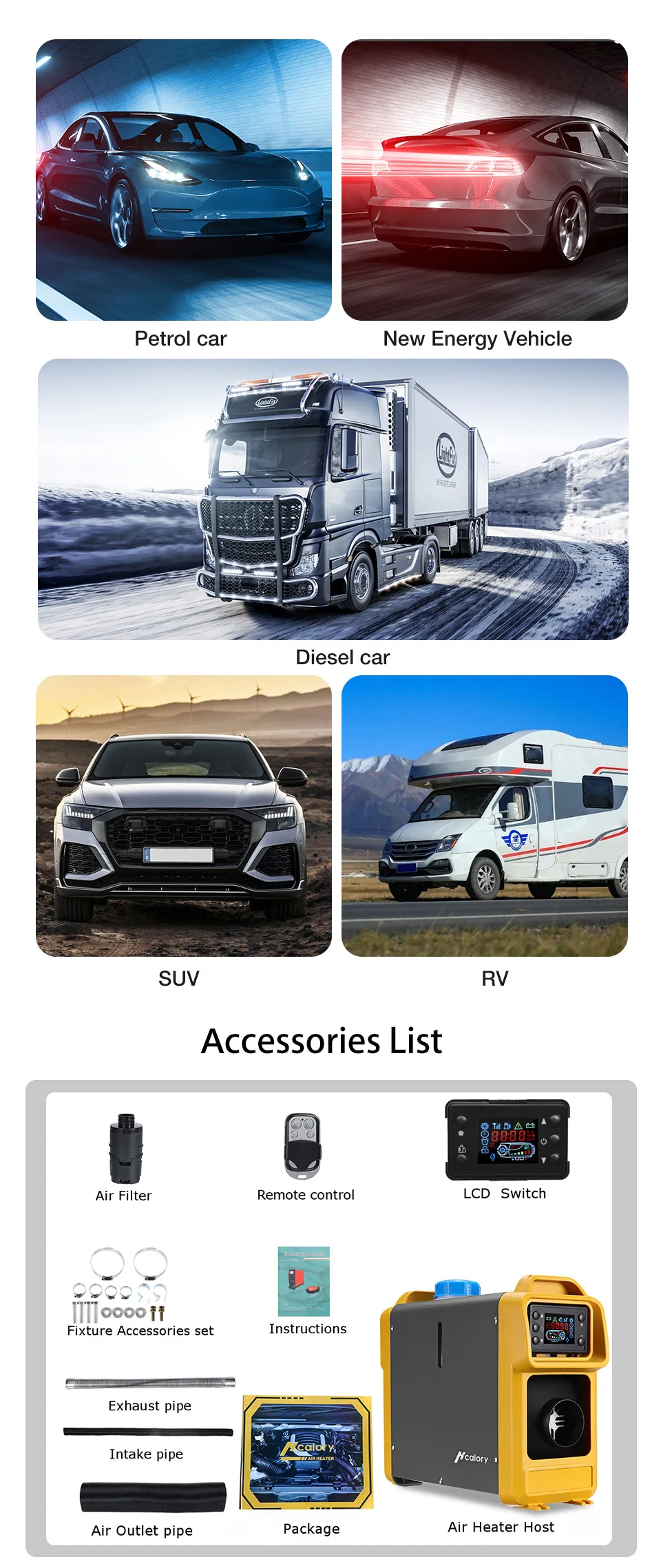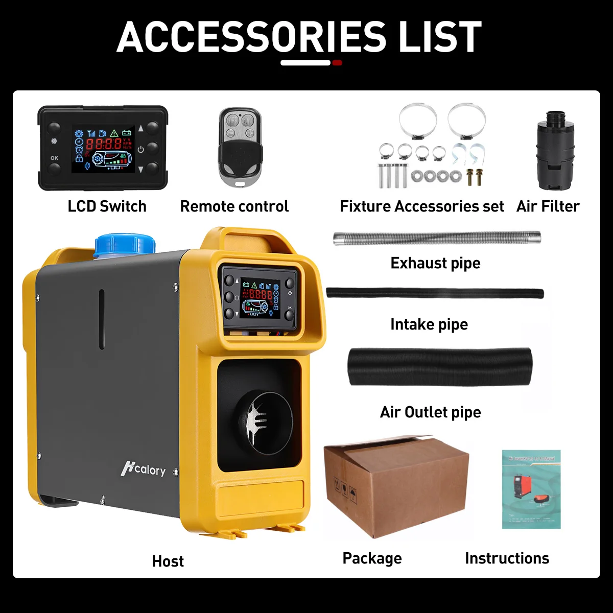 Автомобильный обогреватель HCalory 2 кВт 12 В, все в одном, воздушный дизельный парковочный обогреватель, автомобильный обогреватель для грузовиков, автомобилей, домов на колесах, лодок, автобусов, ЖК-переключатель + пульт дистанционного управления