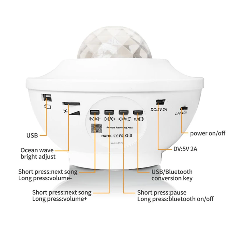 Свет можно активировать с помощью музыки (встроенный мини-динамик для подключения к смартфону или планшету через Bluetooth)