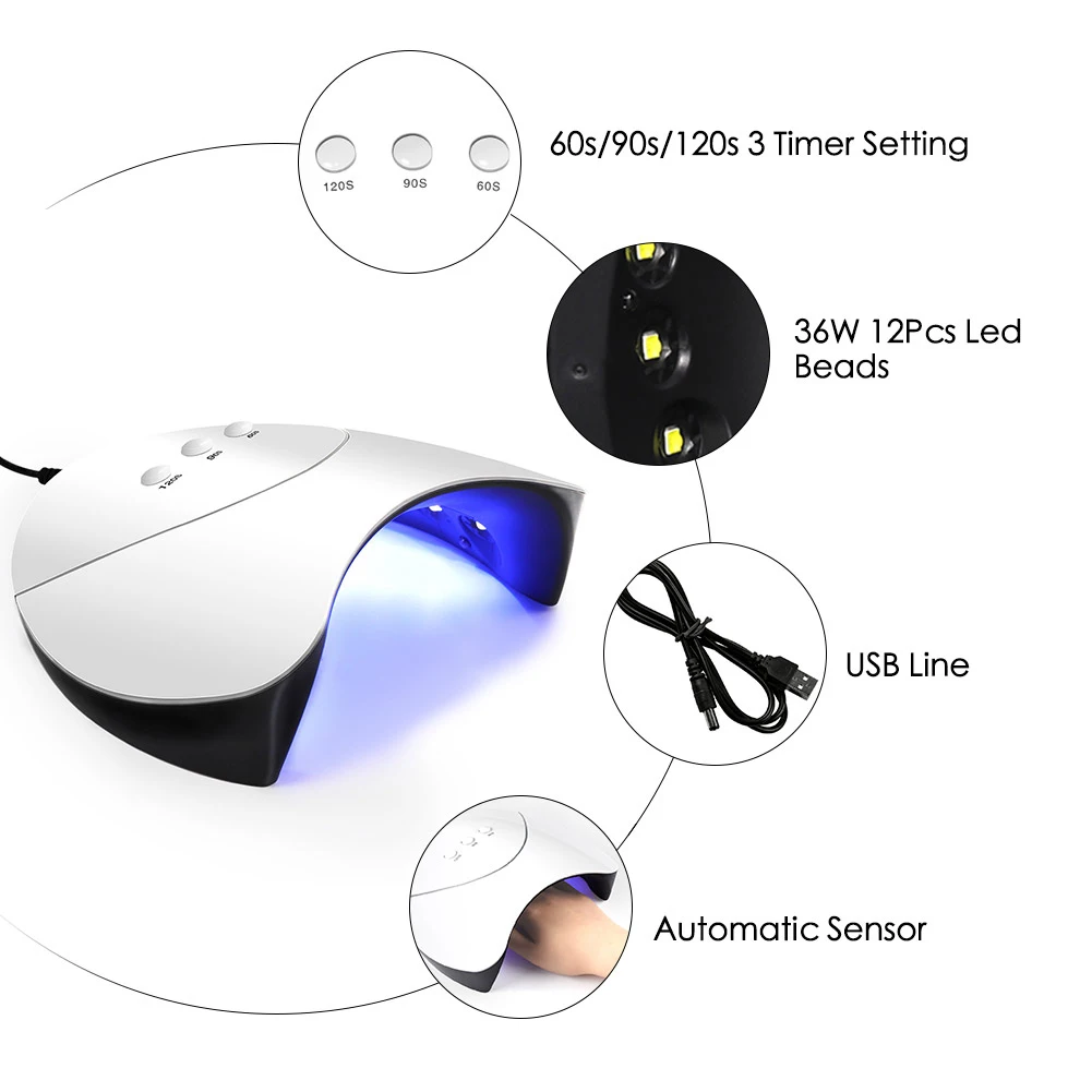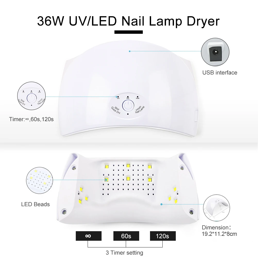 Набор Маникюрный для наращивания ногтей с УФ-лампой мощностью 36 Вт