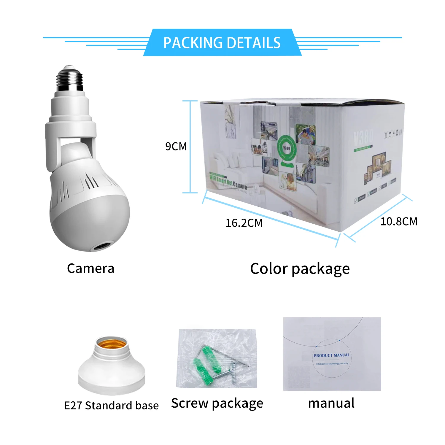 Камера наблюдения с лампочкой E27, панорамная, 360 , Wi-Fi, HD, 108...