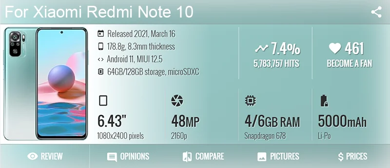 Номер моделиFor Xiaomi Redmi Note 10 5G/POCO M3 Pro 5G M2103K19G M2103K19PI