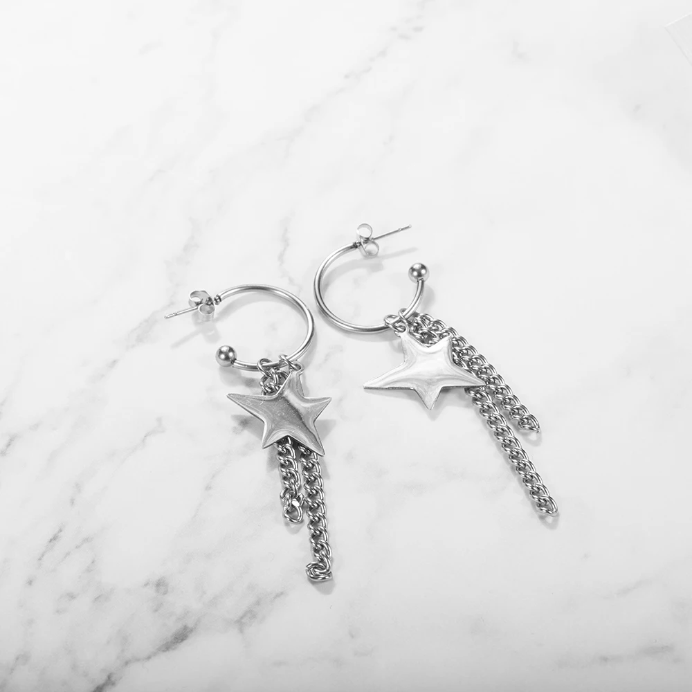 Серьги ASCONA в форме звезды для мужчин и женщин, модные серьги в готическом стиле, в стиле хип-хоп, из нержавеющей стали, 2021 звезда цепи