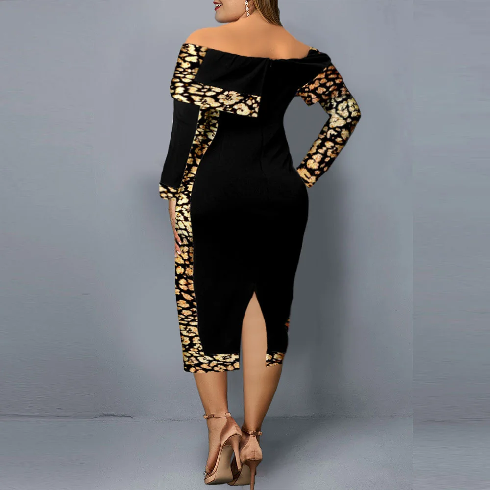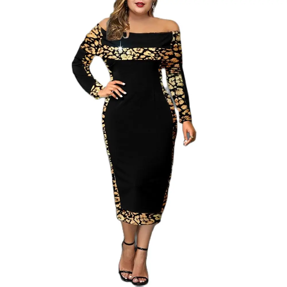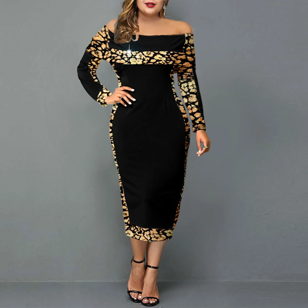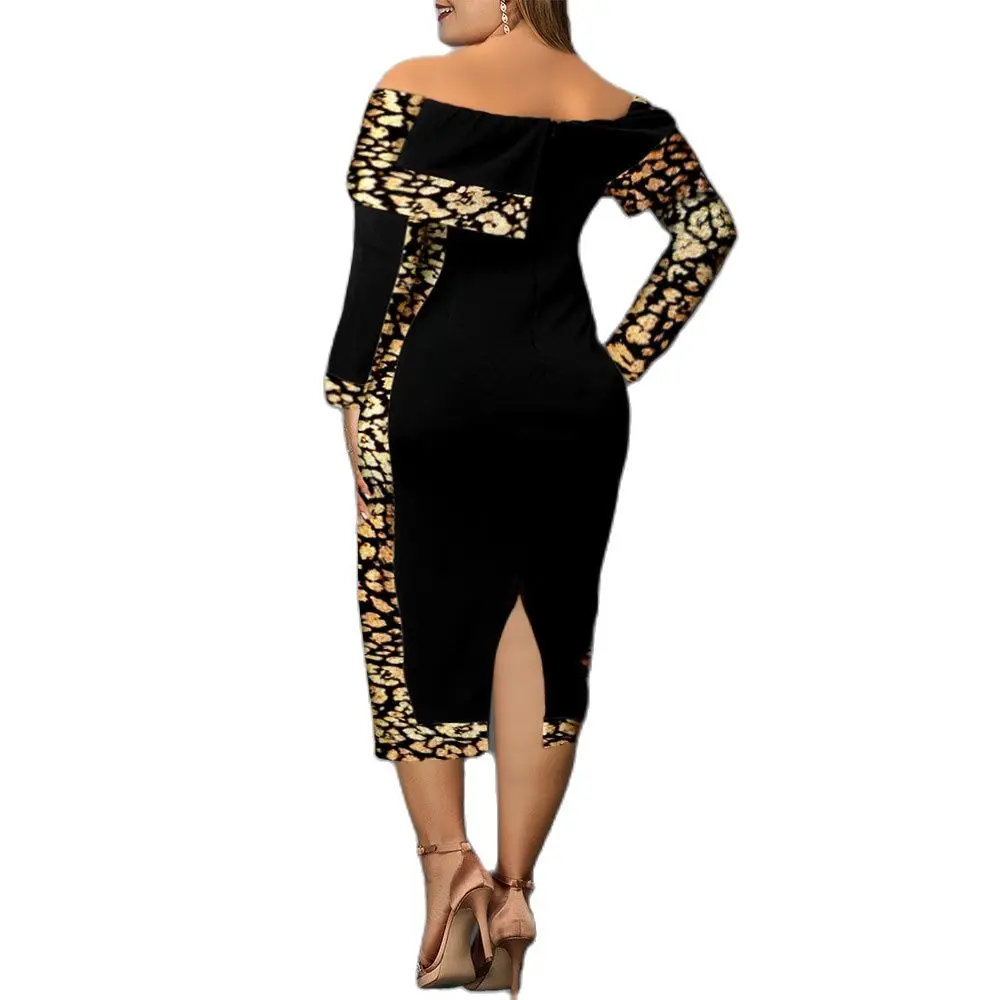 Женское платье с открытыми плечами, черное вечерние нее платье до середины икры, с тиснением, осень размера плюс, 2021