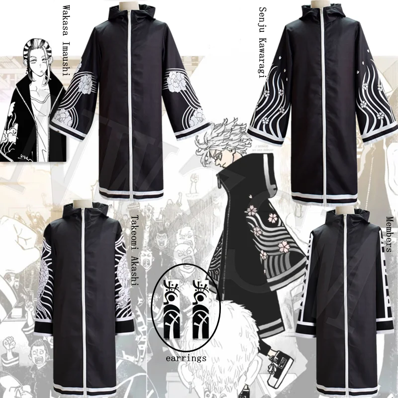 Аниме Tokyo Revengers, карнавальный костюм, сенджу кавараги, вакаса, имауши, брахман, черный плащ, кимоно, мантия, униформа на Хэллоуин