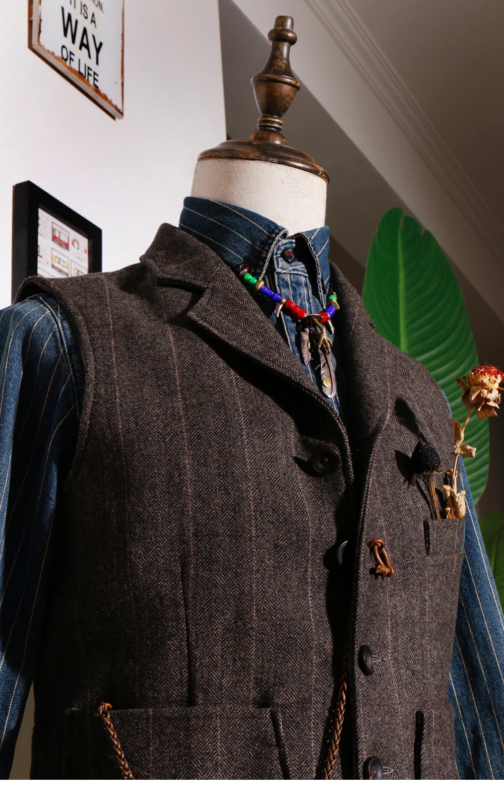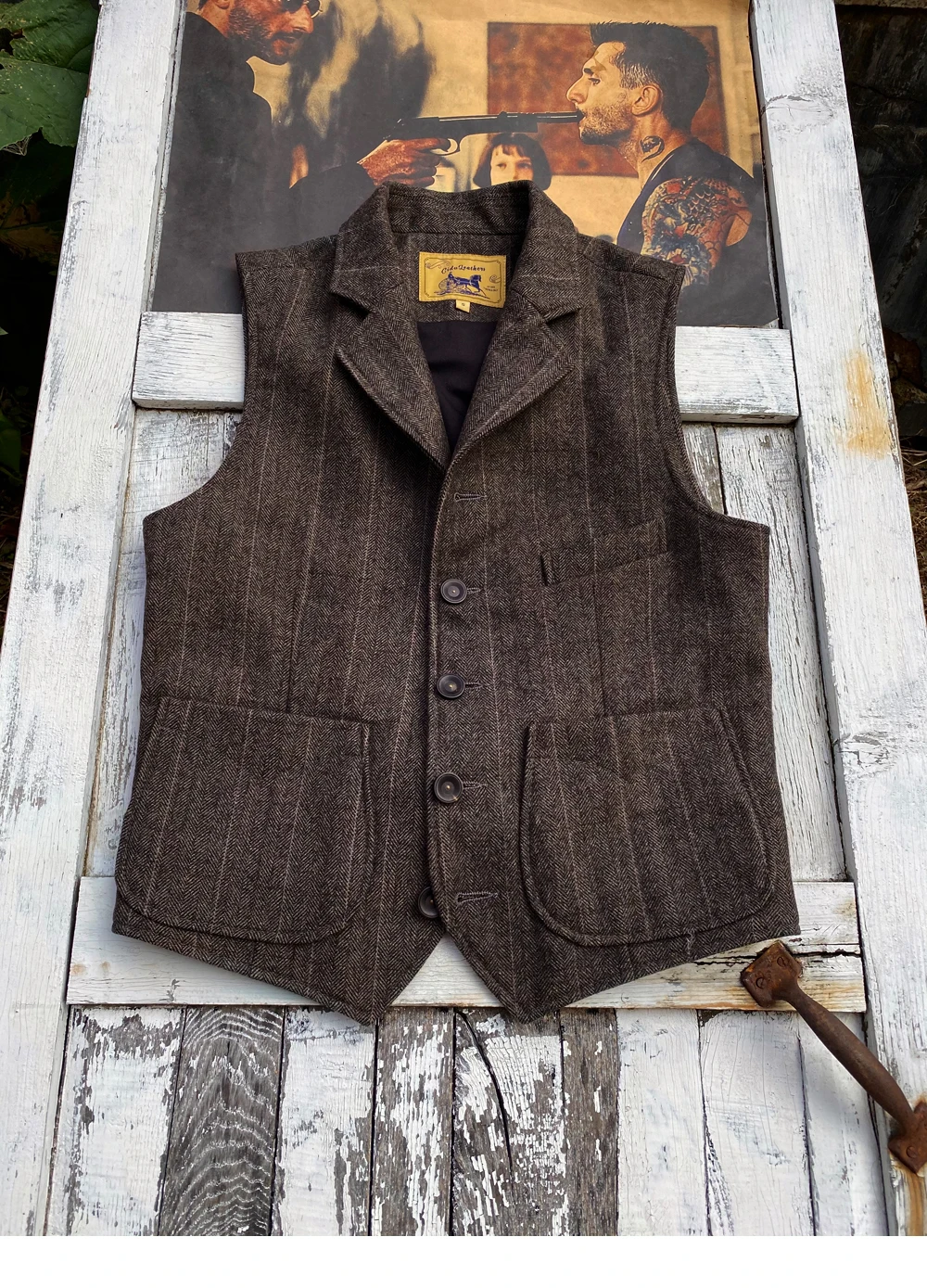 Фотообои, Азиатские размеры! Мужской твидовый жилет, 100% шерсть, 5...