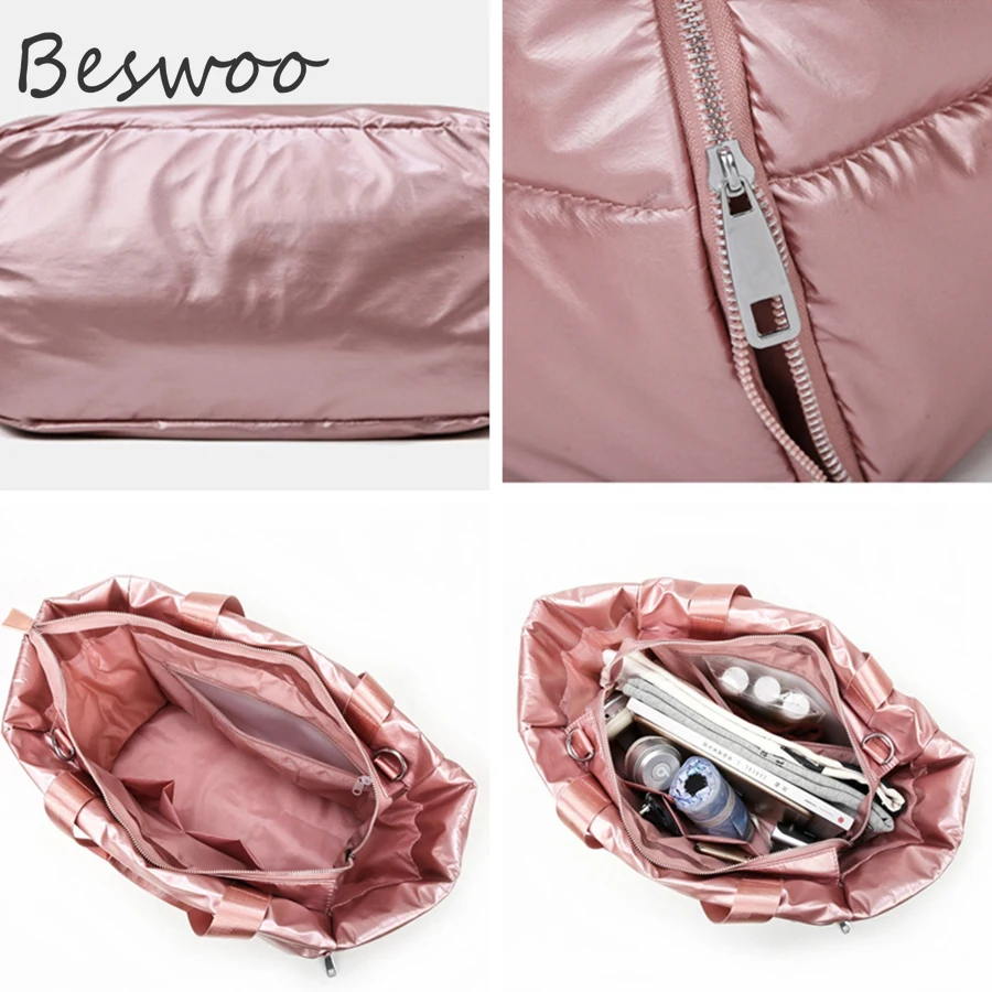 Зимняя женская сумка через плечо 2021 космическая подкладка из хлопка с перьями женские сумки большой емкости водонепроницаемая нейлоновая стеганая женская сумка
