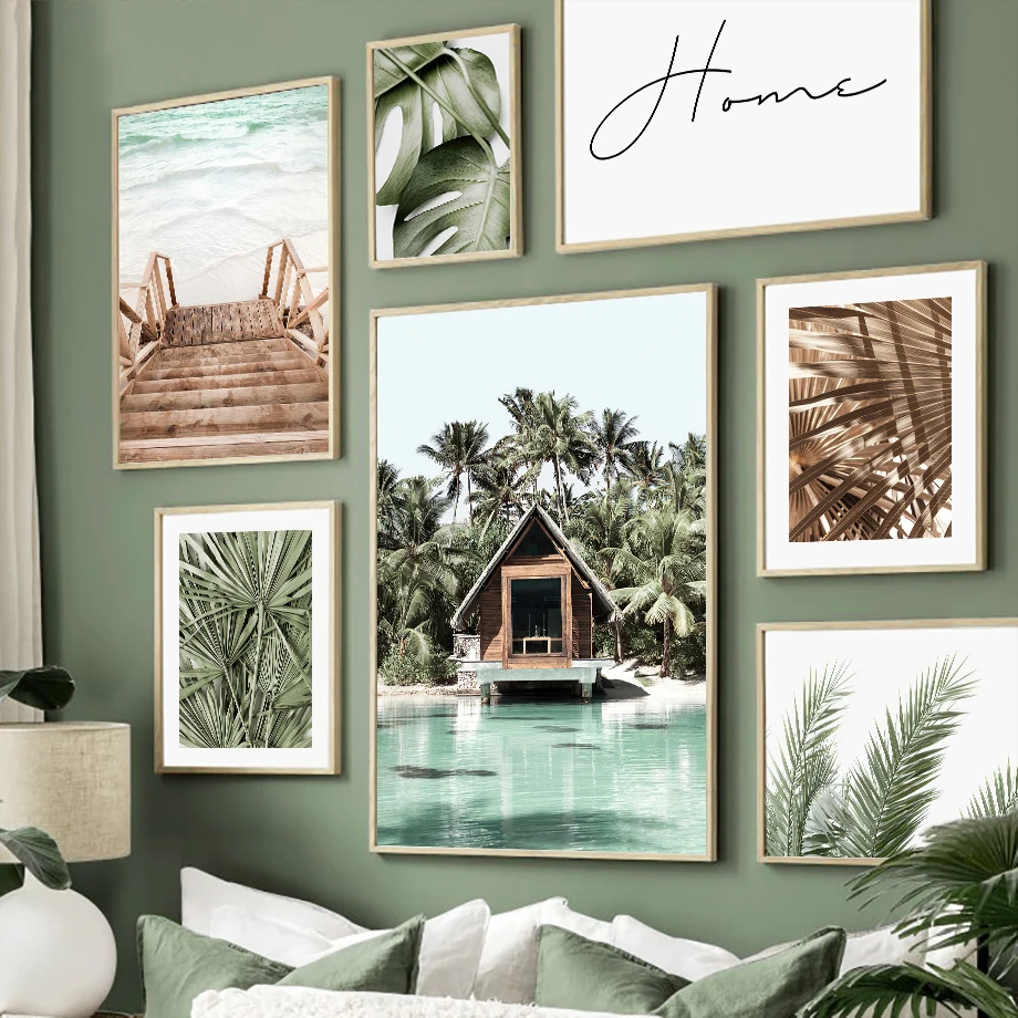 Морские дома бамбук монстера лист цитаты настенное Искусство Холст Живопись скандинавские плакаты и принты настенные картины для гостиной Декор