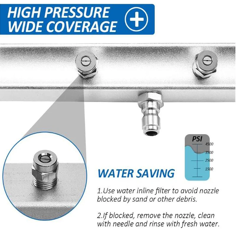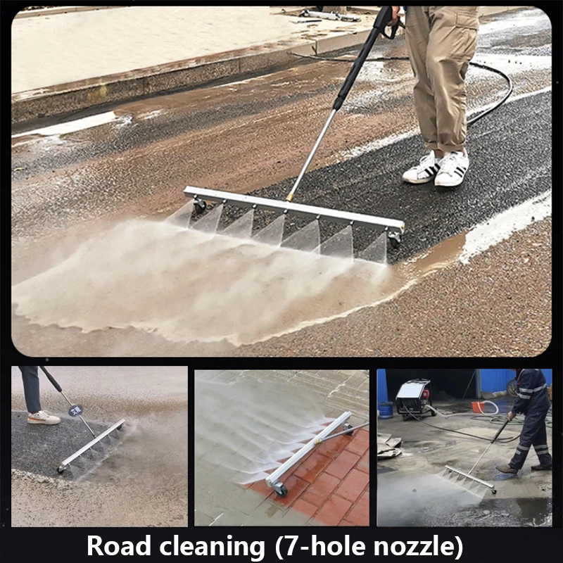 Designdesignкачественный дизайн 〗7 сопел из нержавеющей стали с диапазоном распыления до 50 см, широким диапазоном очистки и высокой эффективностью очистки. 1 конструкция ролика (вращение на 360 °), добилась всех аспектов очистки.✦〖Application〗Clean поверхность быстро, легко и равномерно. Подходит для подметания свободного мусора (песок, листья, светильник) на подъездной дорожке, тротуаре, палубе. Это помогает удалить дорожную грязь, топливо и масляные загрязнители.