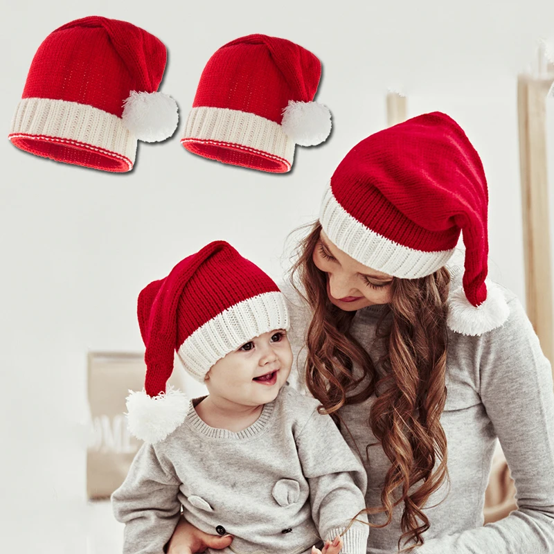 Вязаные шапки с помпонами, рождественские милые женские теплые шапки с Санта Клаусом для мальчиков и девочек, праздничные декоративные повседневные Шапки